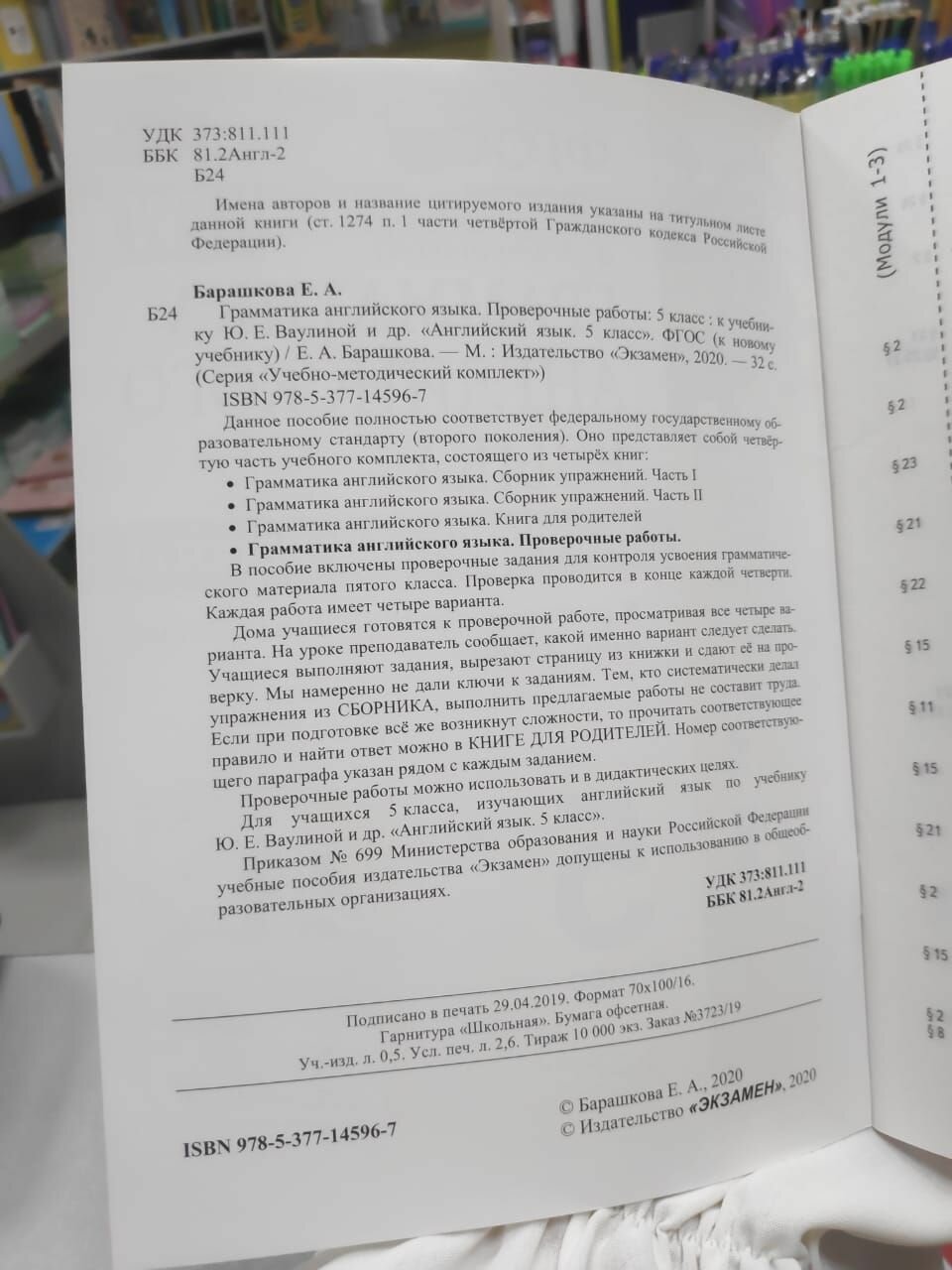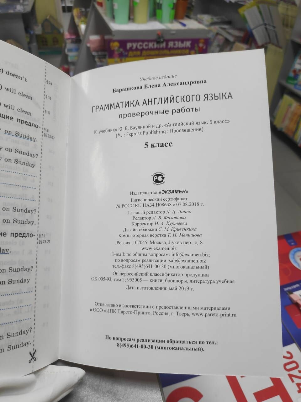 Сервис сравнения цен СкидкаГИД предлагает сравнить цены на товар «Книга: Грамматика английского языка. Проверочные работы. 5 класс: к учебнику Ю.Е. Ваулиной и др. (Барашкова Елена Александровна); Экзамен, 2022»