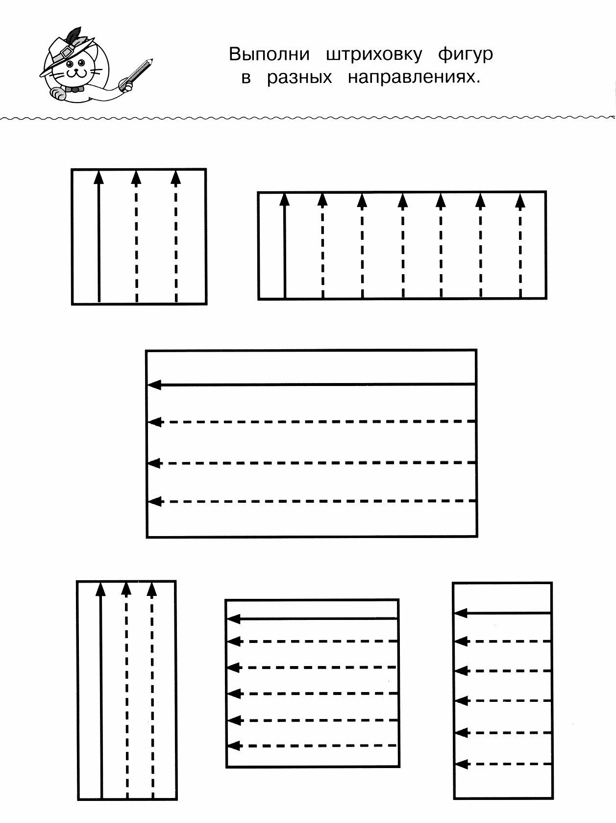 • Выполнение штриховки фигур и предметов в разных направлениях, которые указаны стрелочками