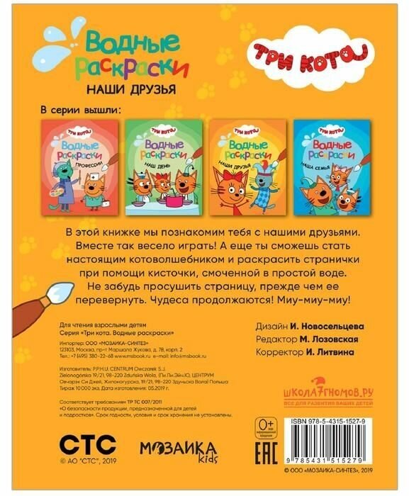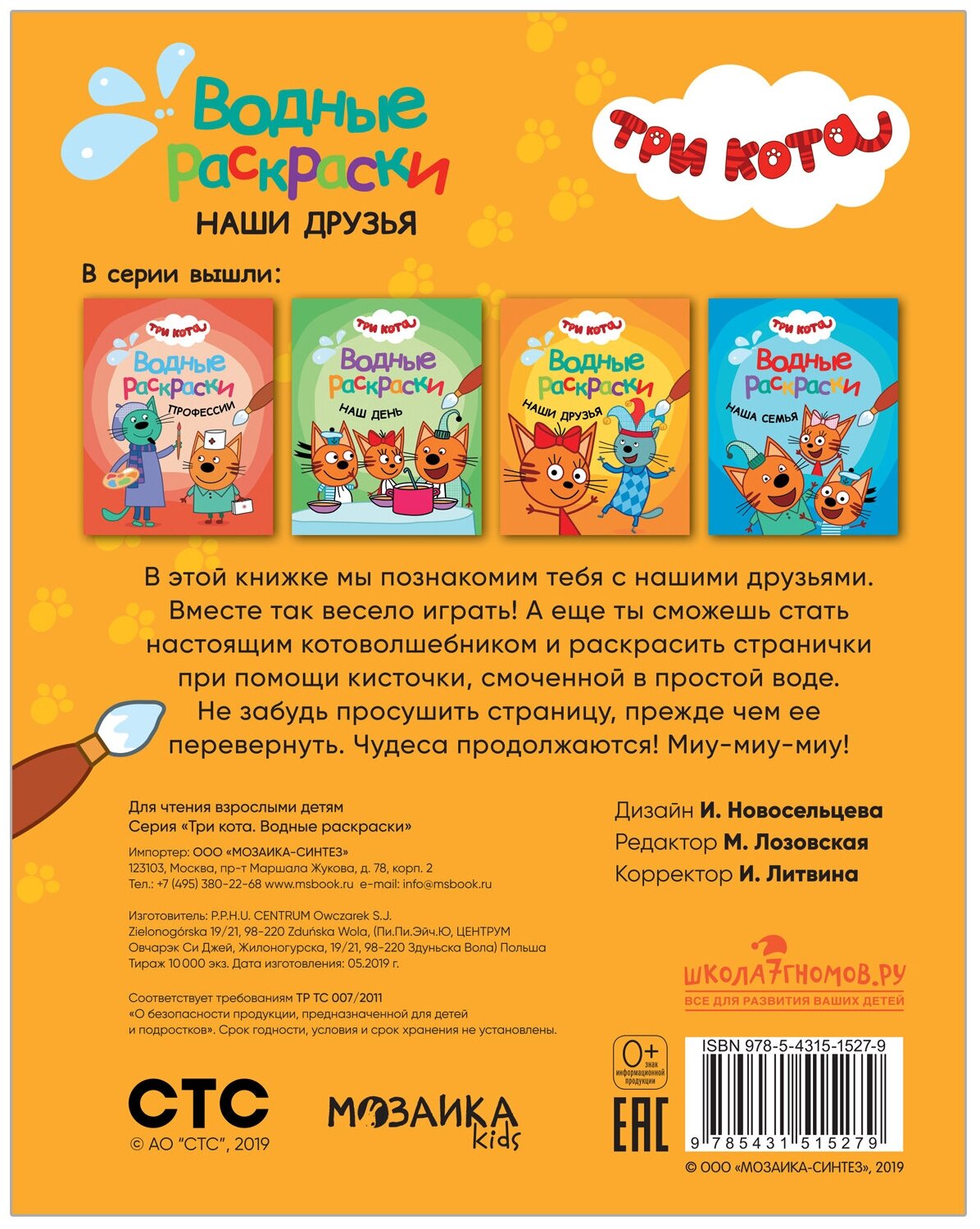 Три кота. Водные раскраски. Наши друзья (Лозовская Мария (редактор)); МОЗАИКА kids, 2019
