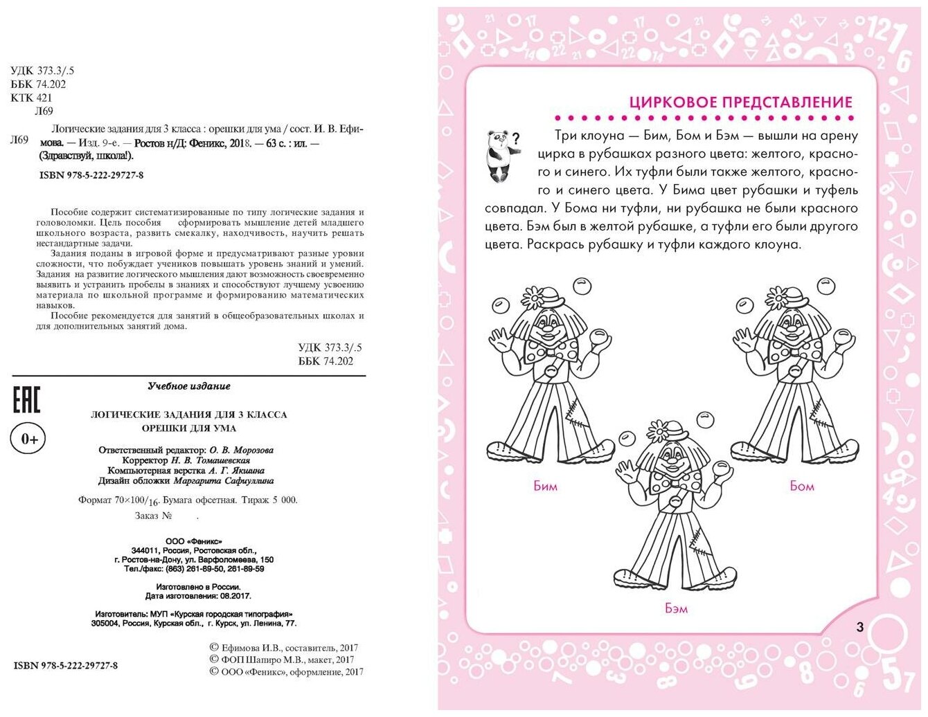 Логические задания для 3 класса:орешки для ума... (Ефимова Ирина Васильевна); Феникс, 2019