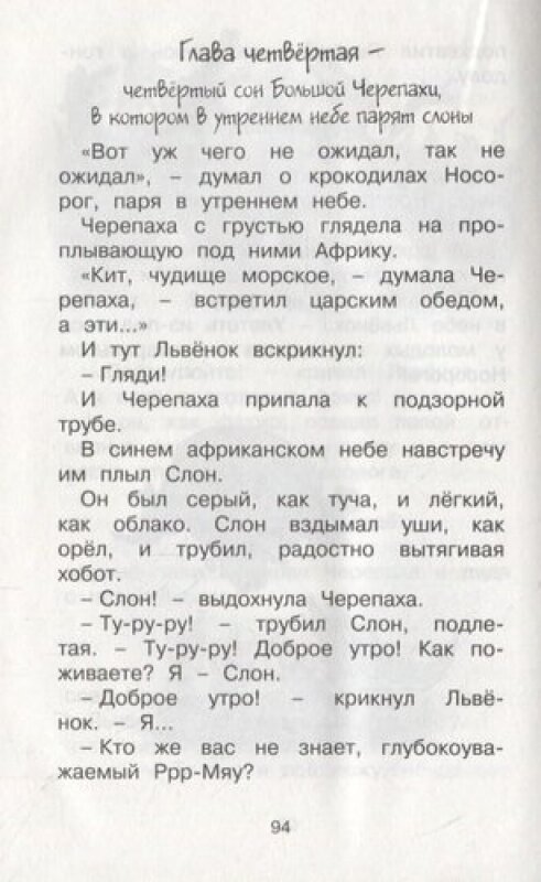 Потрясающая добрая книга, о том как черепаха и львёнок пели веселые песни, путешествовали в страну Тилимилитрямдия и поросята летали. Все мы наверное помним этот яркий и красочный мультик, поэтому конечно жалко что книга чёрнобелая и иллюстраций мало. Содержание подходит даже для дошкольников, а их заинтересует в первую очередь яркие картинки. Так как брали для организации, все ок. Для личного использования советовала бы поискать более дорогие варианты произведения.