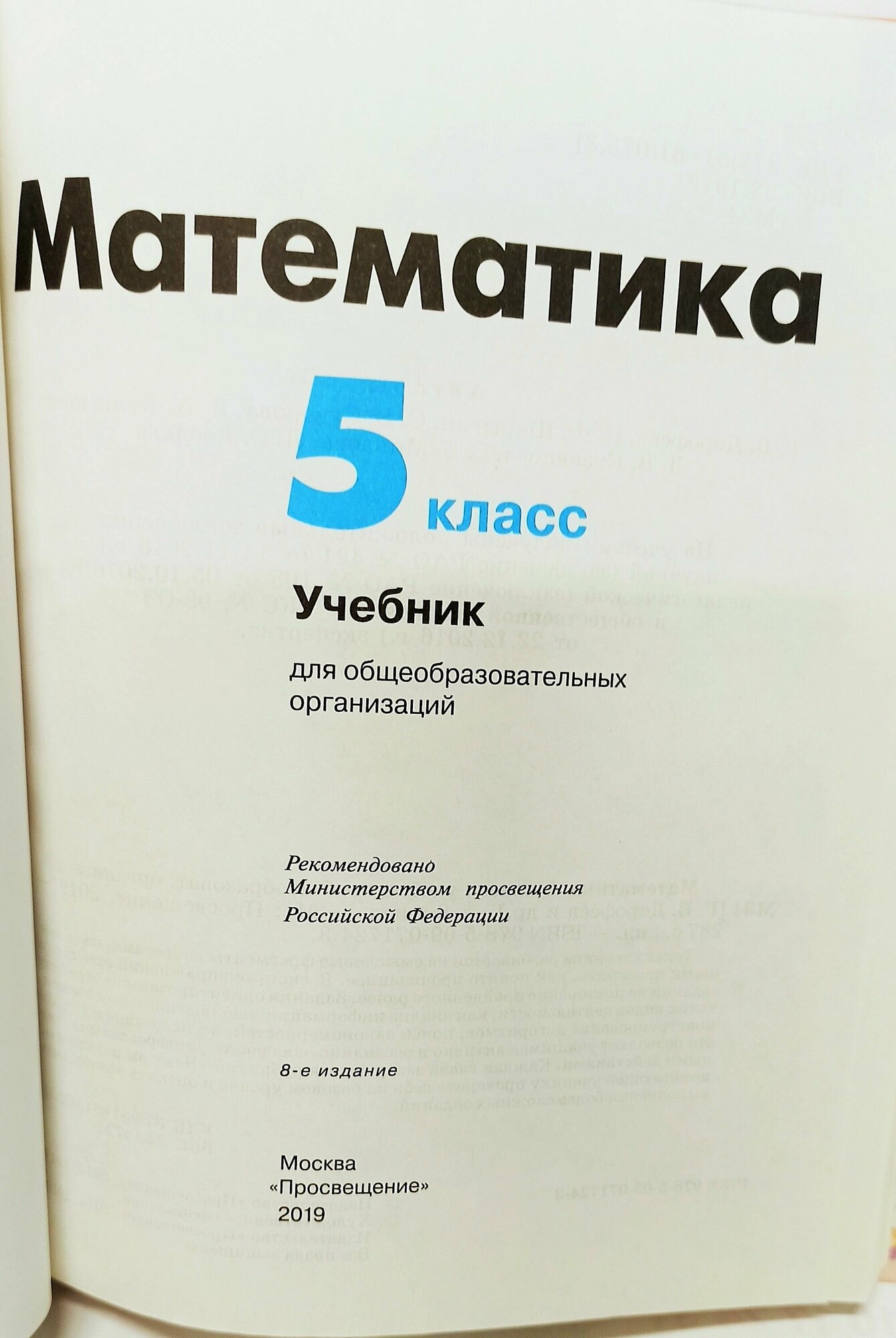 Математика : 5-й класс : учебник для общеобразовательных организаций (ФГОС). 8-е издание (Дорофеев Георгий Владимирович, Шарыгин Игорь Федорович (соавтор), Бунимович Евгений Абрамович (соавтор), Кузнецова Людмила Викторовна (соавтор), Минаева Светлана Станиславовна (соавтор), Суворова Светлана Борисовна (соавтор), Рослова Лариса Олеговна (соавтор)); Просвещение, 2019