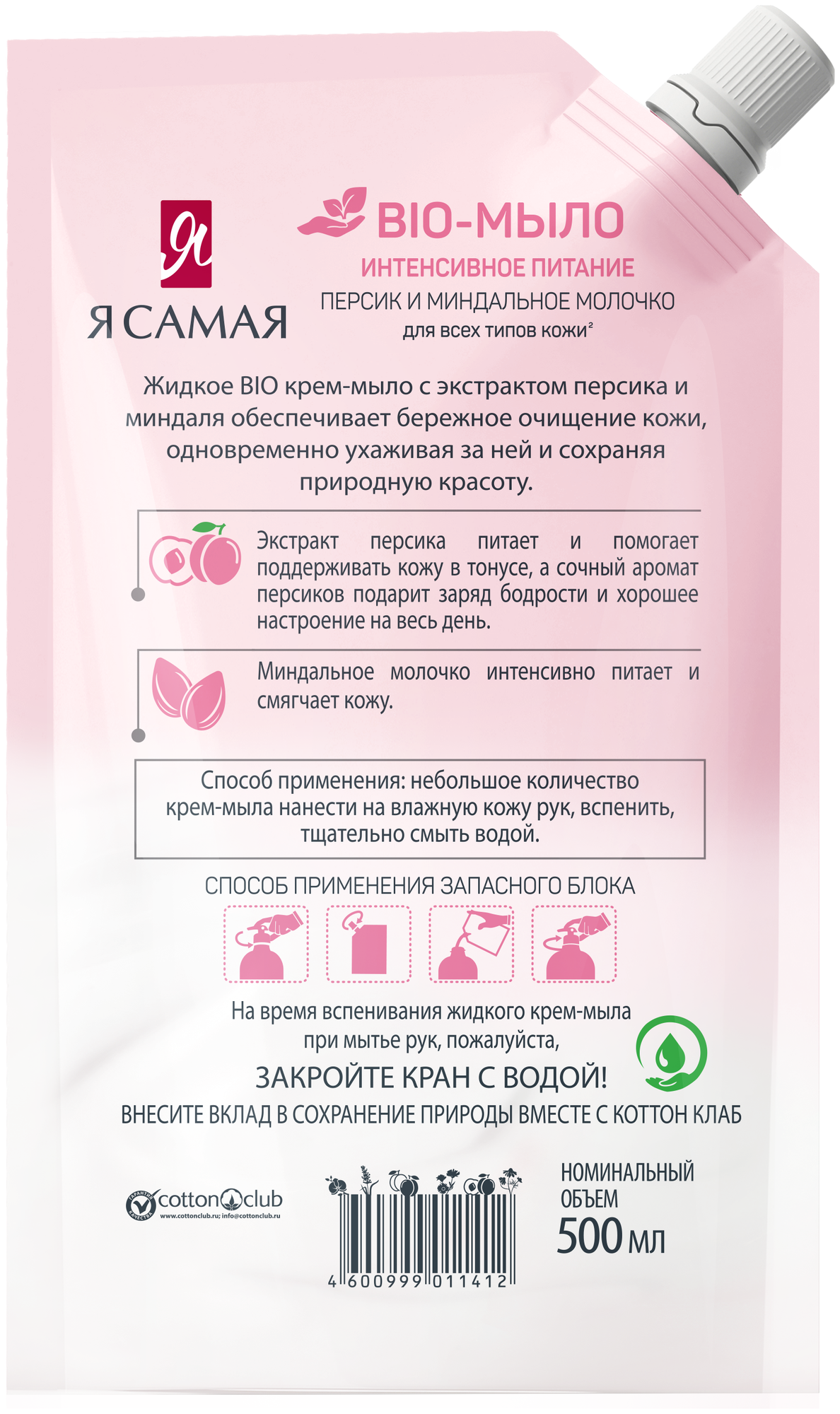 Крем-мыло Я Самая Персик и миндальное молочко 500 мл (CCIA05n6)