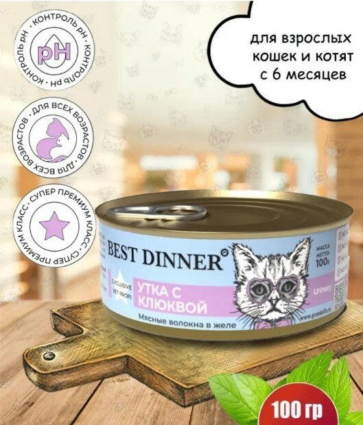 Сервис сравнения цен СкидкаГИД предлагает сравнить цены на товар «Влажный корм Best Dinner для взрослых кошек Утка с клюквой 100 г Exclusive Urinary»