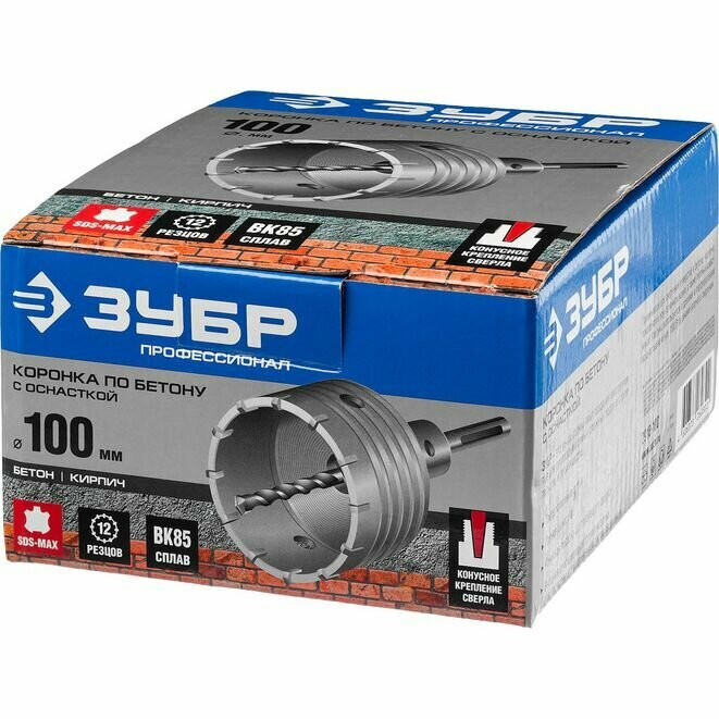 | Доп. наименование Водопад | Коронка по бетону с державкой Зубр 2918-100 Ø 100 мм |