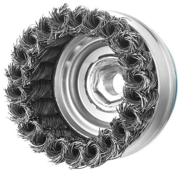 Щетка чашечная усиленная для УШМ Зубр "ПРОФЕССИОНАЛ" применяется на УШМ для тяжелых зачистных работ.Преимущества Повышенный ресурс щетки благодаря еще более высокой жесткости сплетенного пучка и увеличенной толщине проволоки Жгутированная в пучки проволока придает щетке повышенную жесткость Практичное в применении стопорное кольцо стабилизирует щетку и с легкостью удаляется после истирания жгутов освобождая при этом последующие 15 мм их рабочей длины Высокая плотность проволоки в жгуте Надежное крепление к УШМ — резьбовое соединение М14 гарантирует простую и безопасную установку на большинство угловых шлифовальных машин
