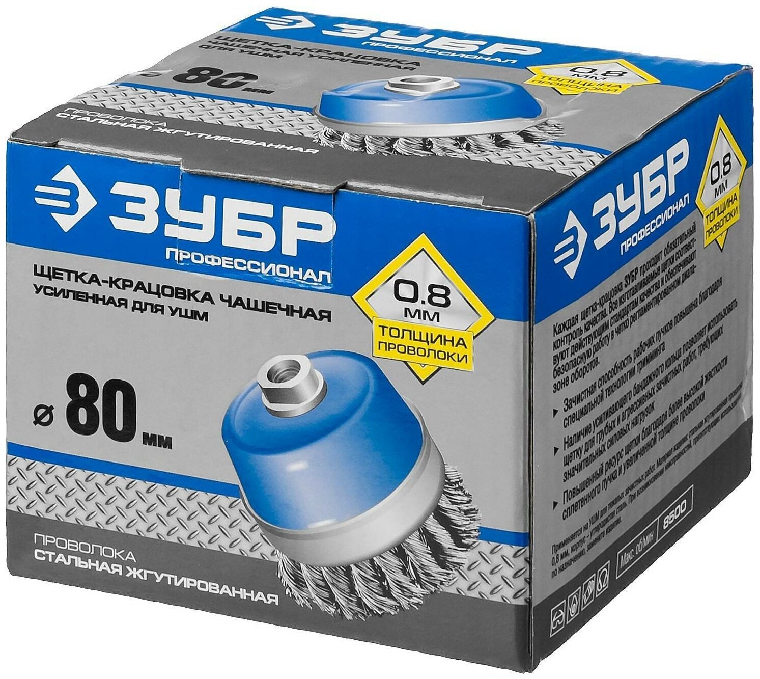 | Доп. наименование Водопад | Щетка чашечная для УШМ Зубр Профессионал 35271-080_z02 Ø 80 мм, проволока 0.8 мм |