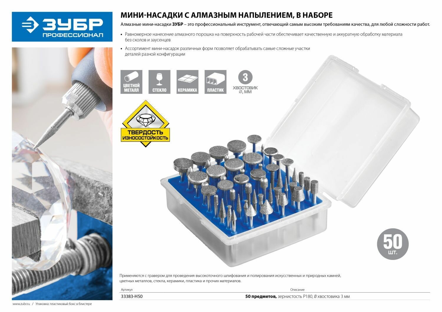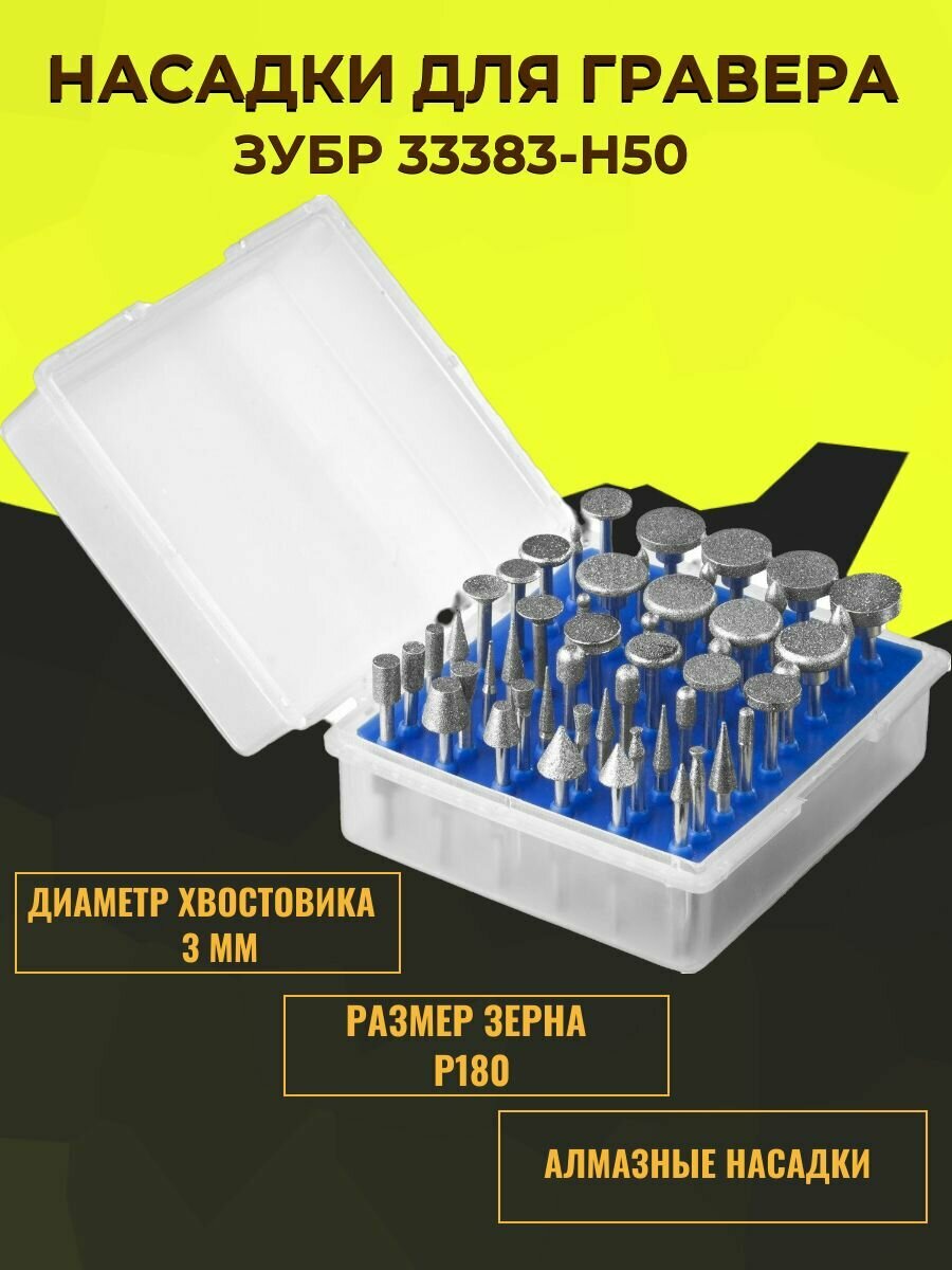 Набор мини-насадок для гравера Зубр Профессионал Р180, хвостовик 3 мм, 50 шт.