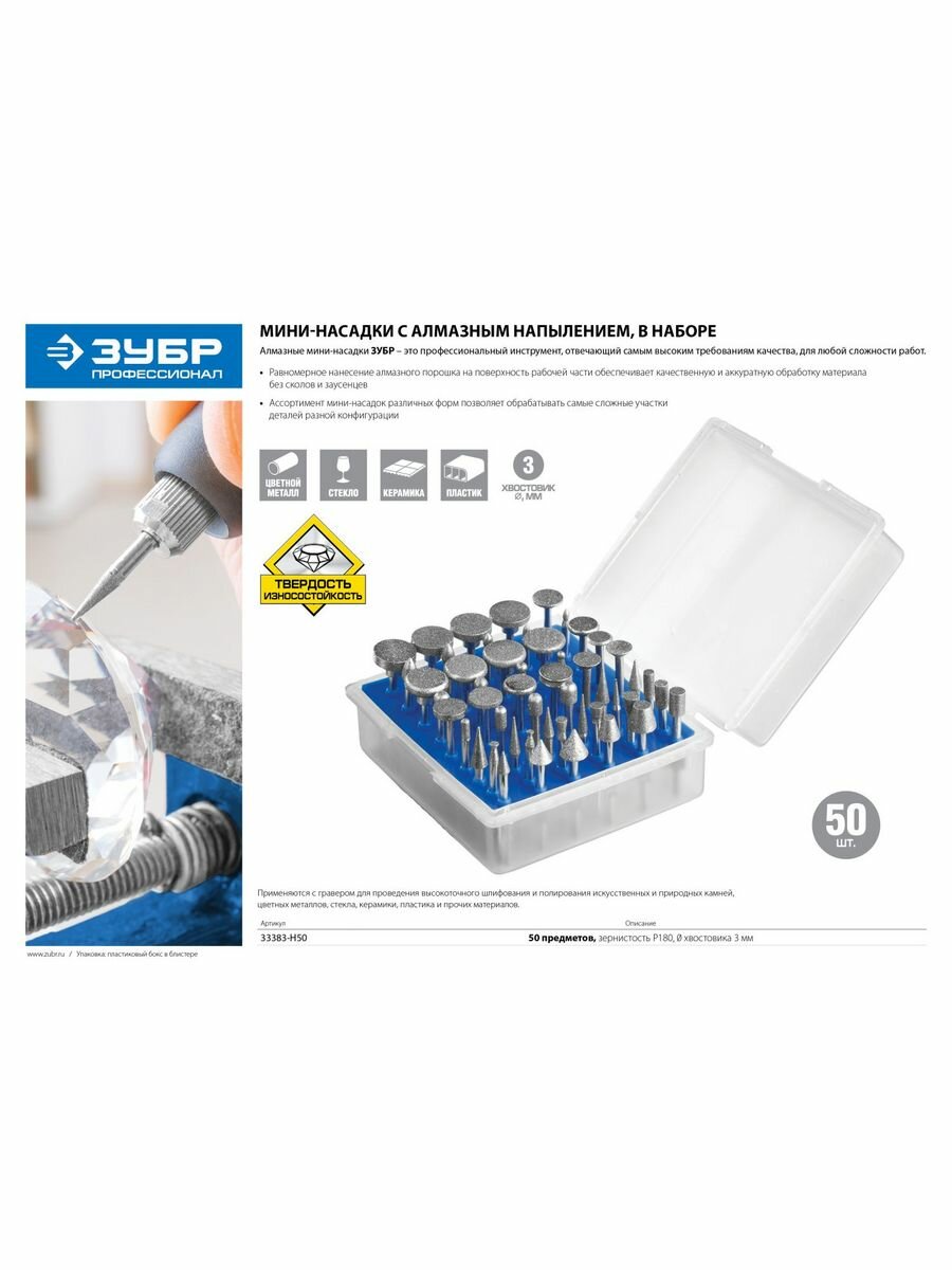 ЗУБР 50 шт., хвостовик d3 мм, Р180, Набор мини-насадок для гравера, Профессионал ()