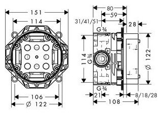 - Скрытая часть для однорычажного смесителя для душа Hansgrohe 13620180