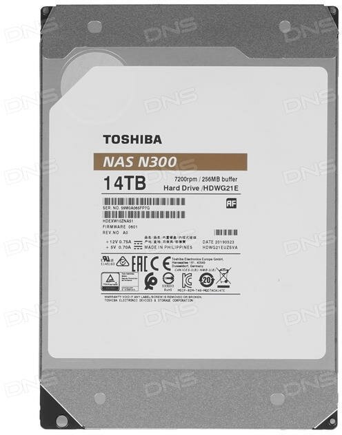 Жесткий диск TOSHIBA N300 14Тб HDD SATA III 3.5" BULK HDWG21EUZSVA
