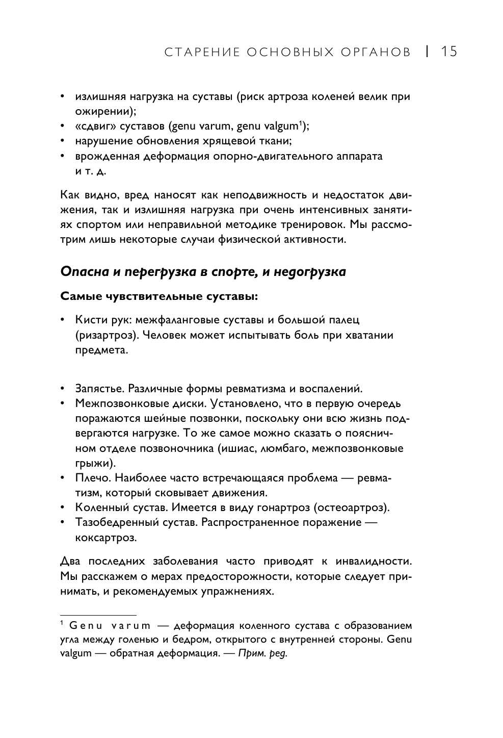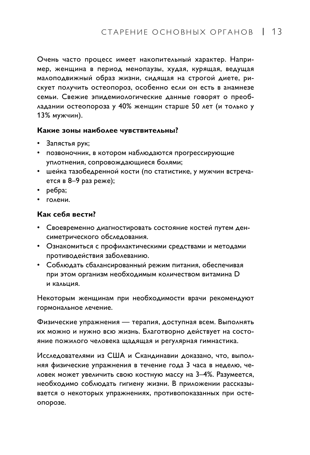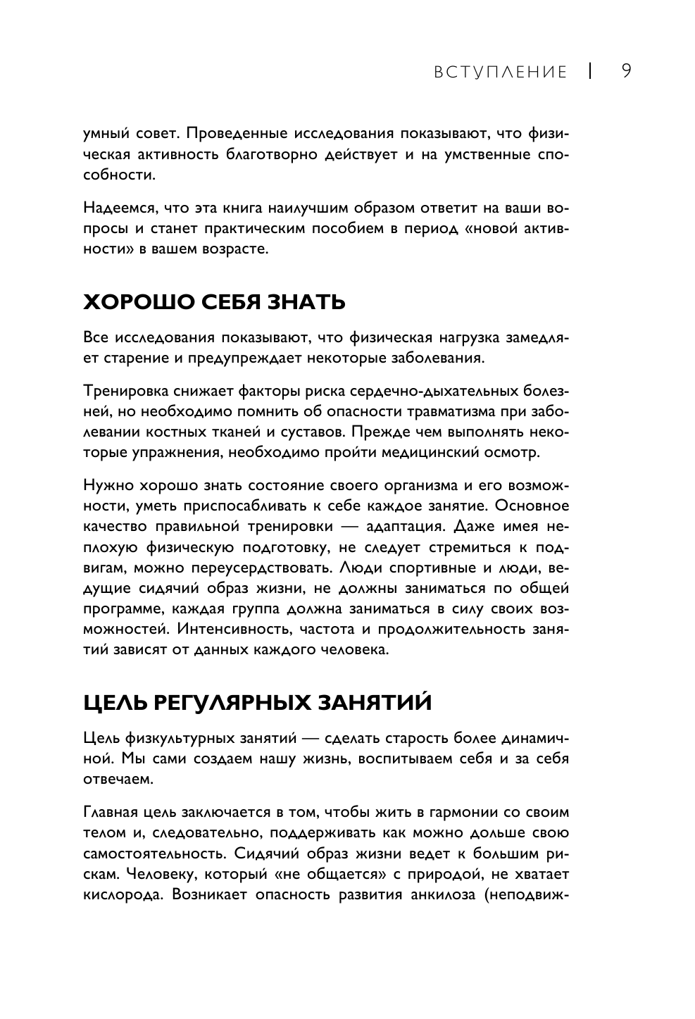 Физическая активность поддерживает форму и здоровье в любом возрасте, а также увеличивает продолжительность жизни. Начиная с 50 лет настоятельно рекомендуется заниматься физическими упражнениями каждый день, даже если вы никогда не были опытным спортсменом. Спорт не только повышает моральный дух, но и снижает кровяное давление, предотвращает остеопороз, поддерживает работу сердца. Для каждого упражнения вы найдете точные инструкции: пошаговые иллюстрации помогут вам в изучении техники, разработанной с уважением к телу и его анатомии.