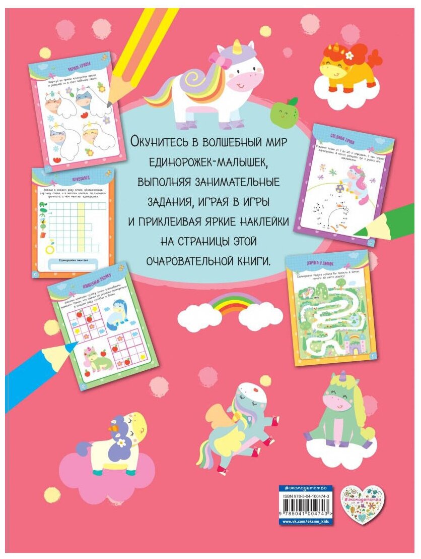 Единорожки-малышки. Головоломки раскраски наклейки (Авторский коллектив); ООО "Издательство "Эксмо", 2019