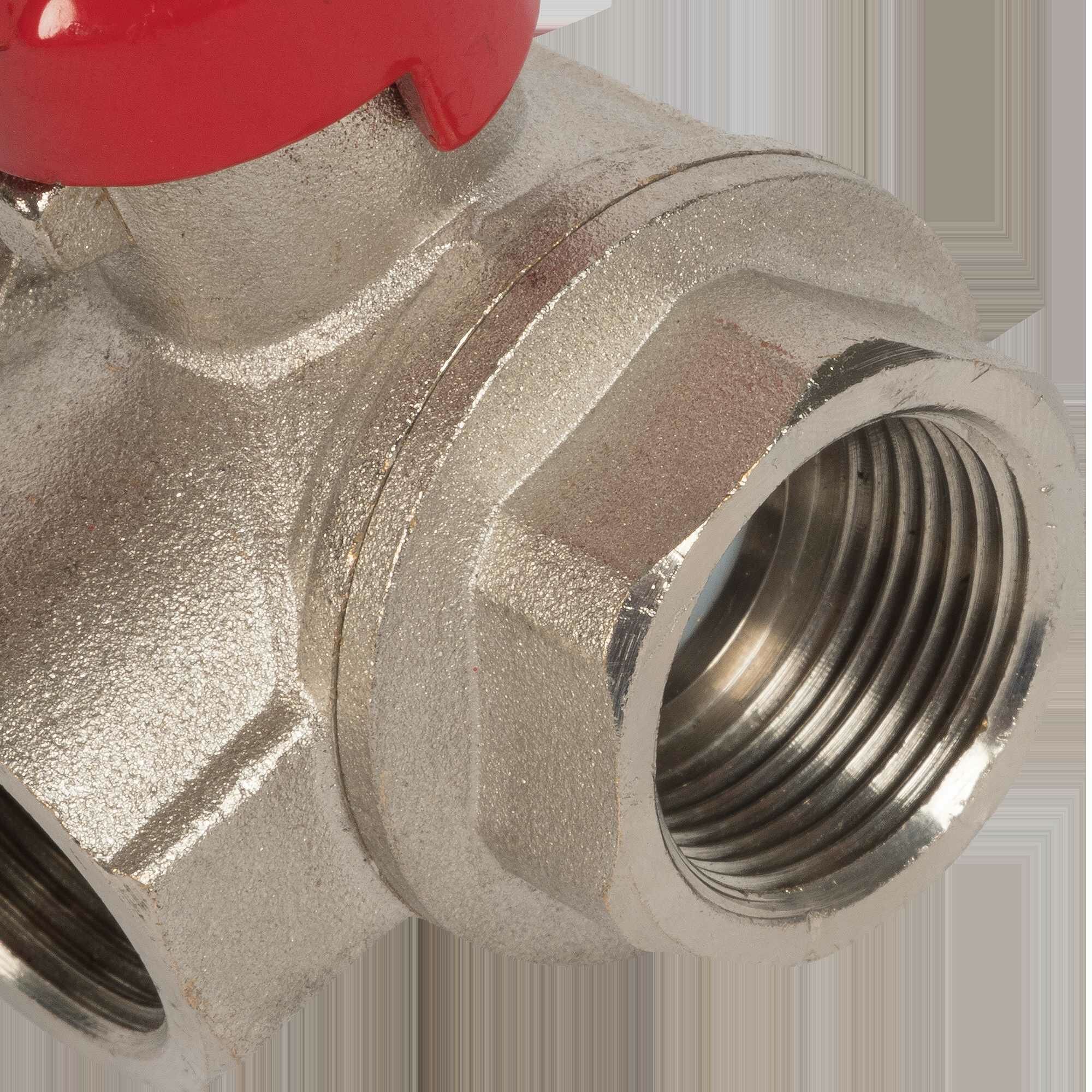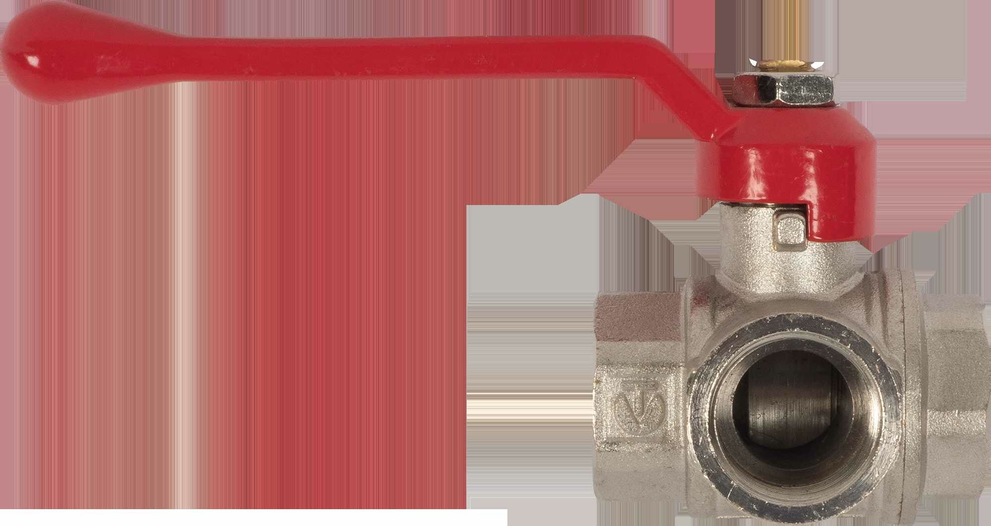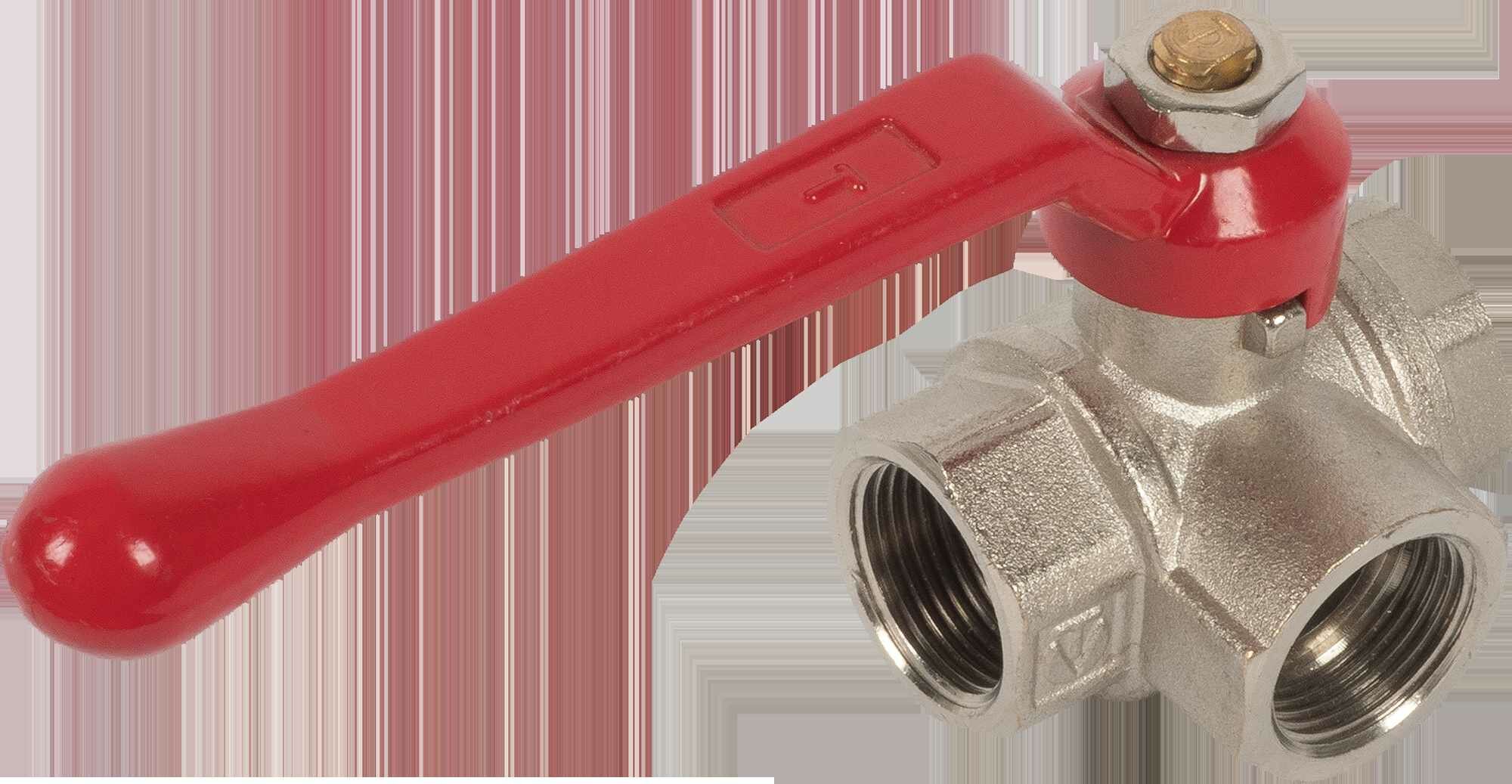 Латунный никелированный трехходовой кран, обеспечивающий изменение потока в трубопроводах систем водоснабжения, отопления, технологических установок. Ремонтопригоден, оснащен шаровым затвором с T-образным каналом, тефлоновыми (PTFE) седельными кольцами и сальниковым уплотнением, флажковой рукояткой из алюминиевого сплава. Минимальный ресурс крана - 20 тыс. циклов. Максимальная температура рабочей среды - 150 градусов Цельсия.