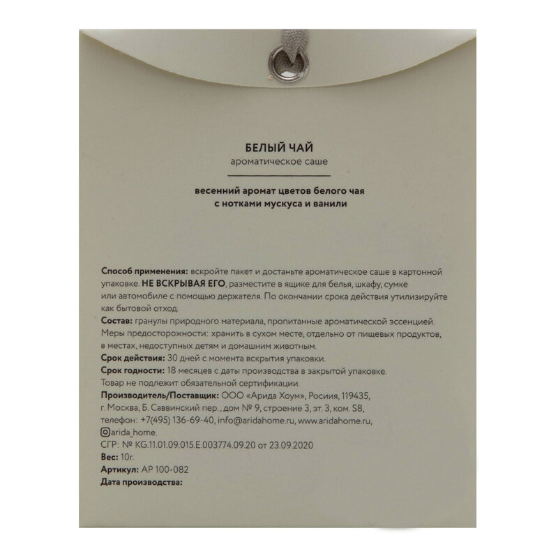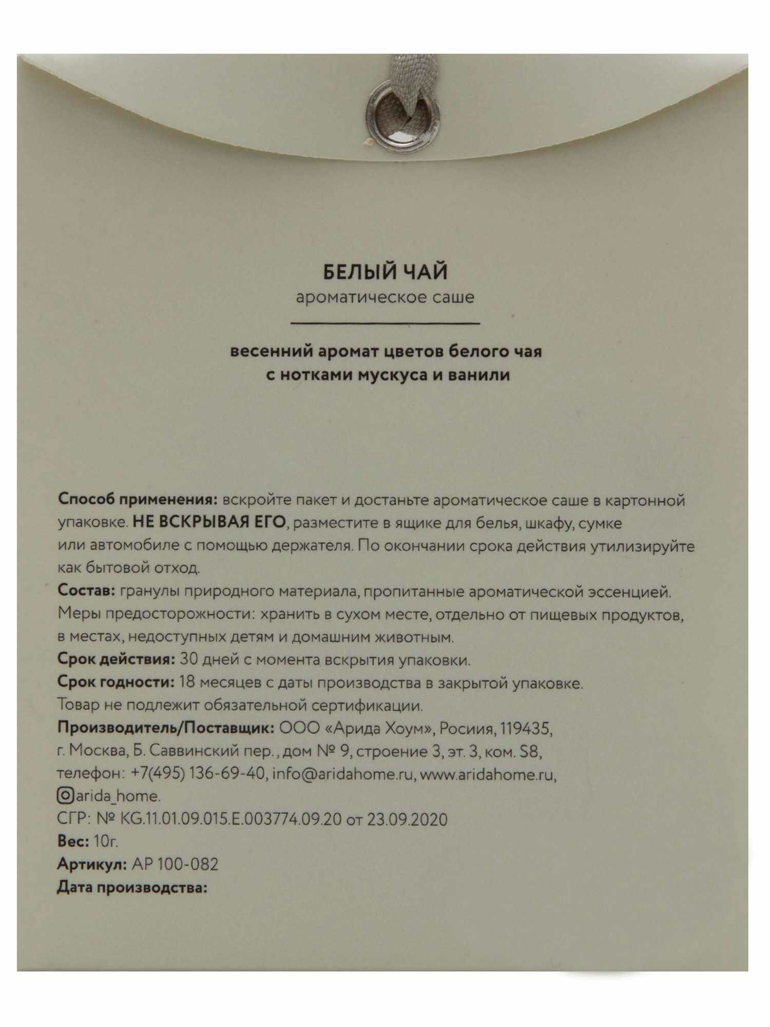 Арома саше цветочный Белый чай 10 гр Arida Home