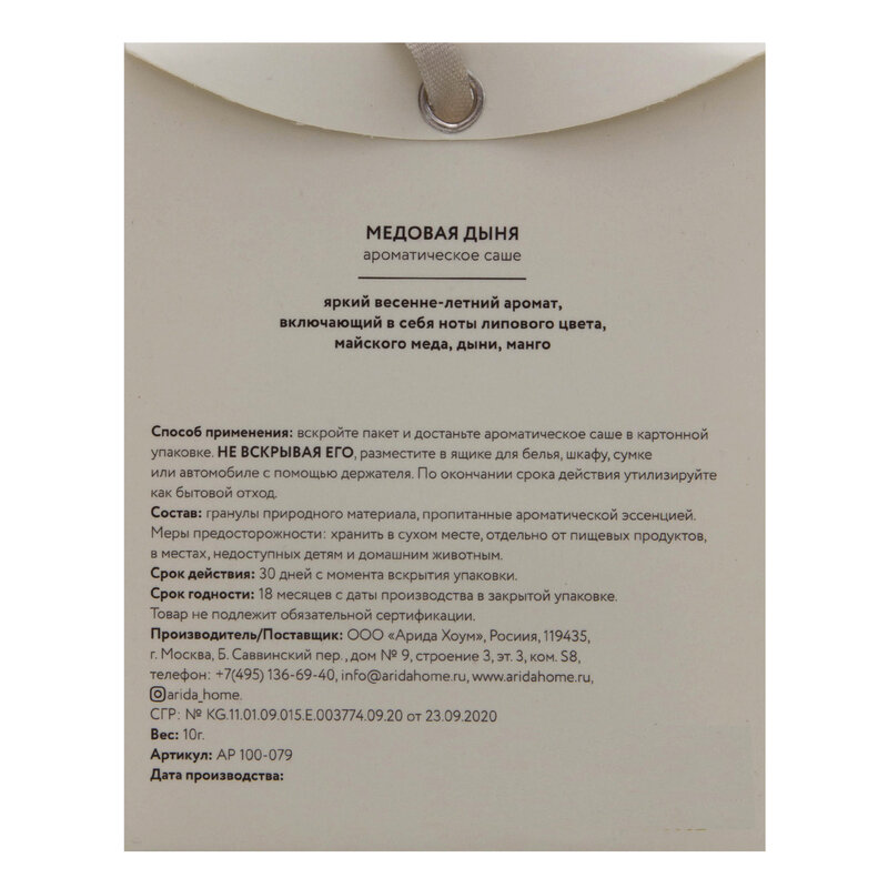 Арома саше фруктовый Медовая дыня 10 гр Arida Home