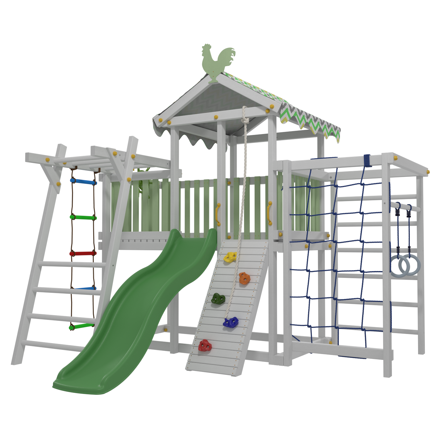 | Комплектация | гимнастические кольца; горка; лесенка; турник; шведская стенка; веревочная лестница; рукоход; скалодром |