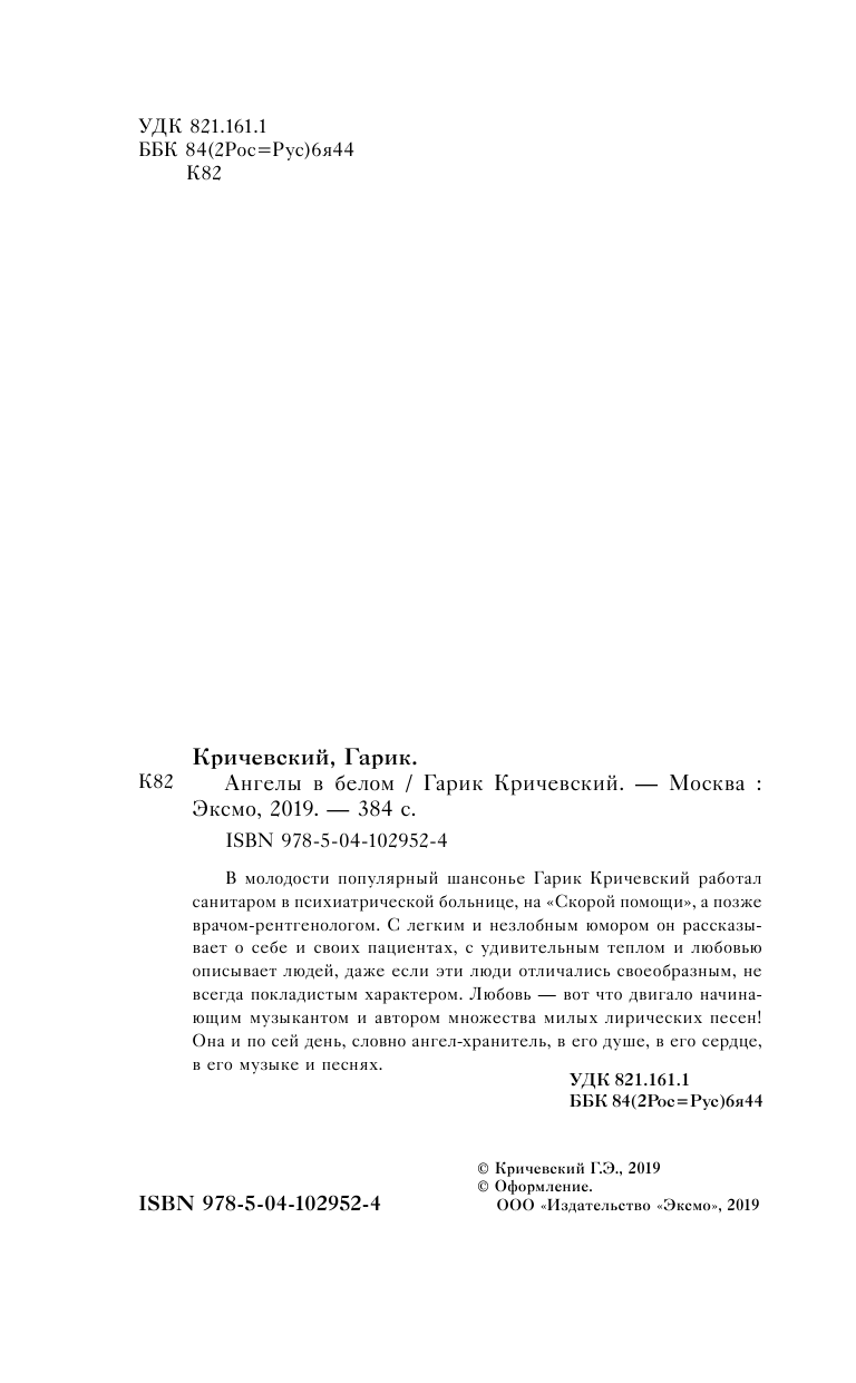 Книга: Ангелы в белом (Кричевский Гарик); ООО "Издательство "Эксмо", 2019