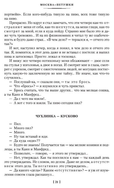 Москва-Петушки это гениальная сумасбродная, самоироничная книжка, написанная для друзей Ерофеева ради шутки.