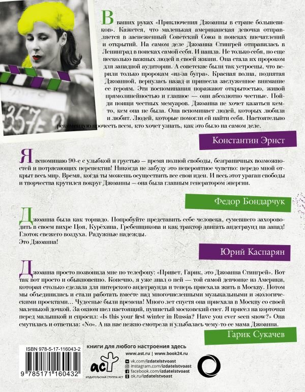 "Я с головой погрузилась в это "безумное чаепитие", по уши влюбилась в этих парней, в этот город и заодно в эту страну. Я научилась согреваться на холодных улицах коммунистической России, научилась за масками и за показным имиджем видеть живых людей".