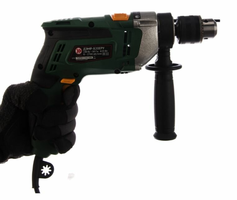 Ручная электрическая ударная дрель (ударная сверлильная машина) Калибр ДЭМР-820ЕРУ+ предназначена для сверления отверстий в цветных и чёрных металлах, пластмассах, дереве, кирпиче, бетоне и других строительных материалах.