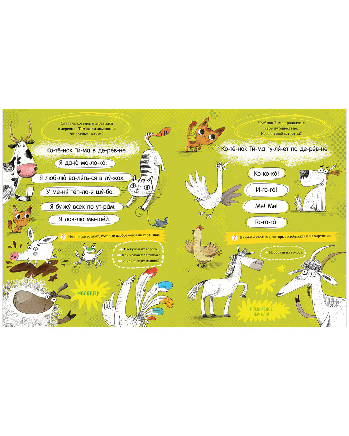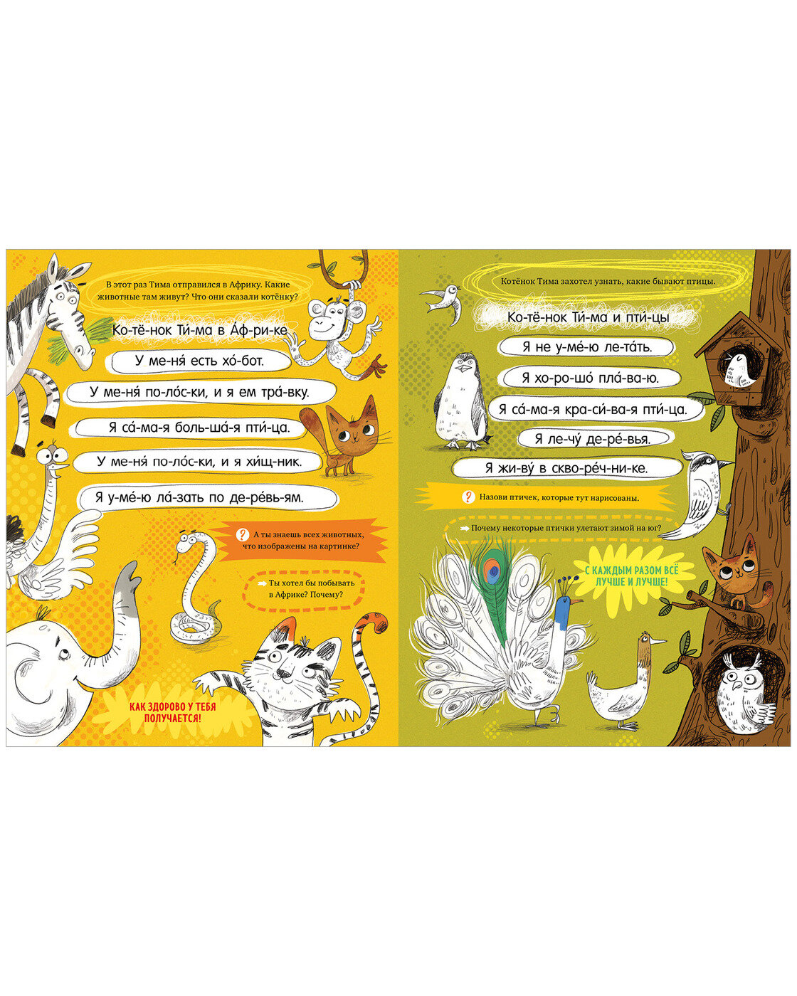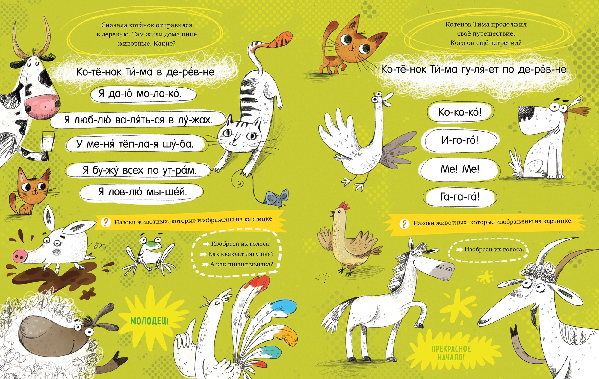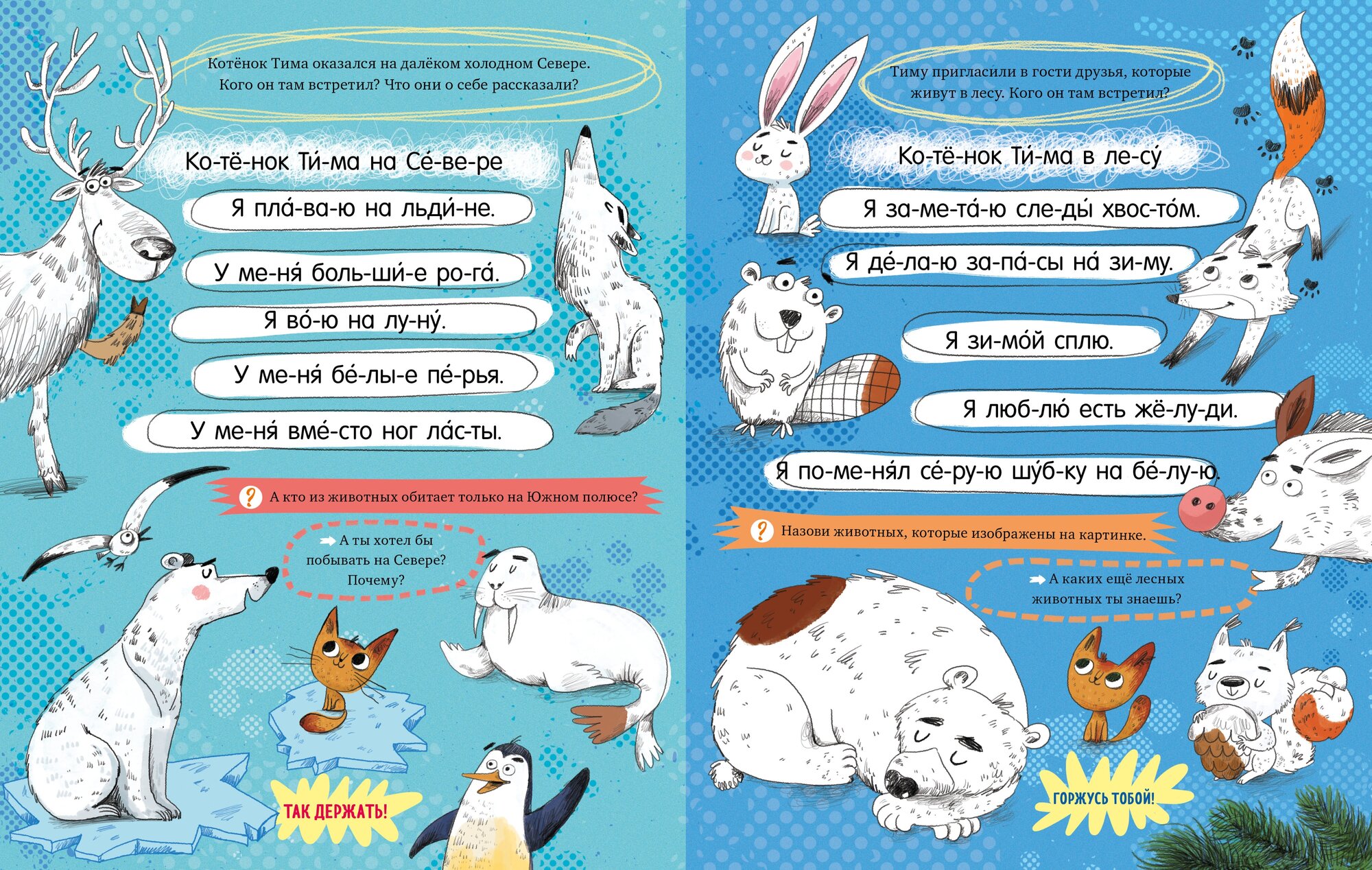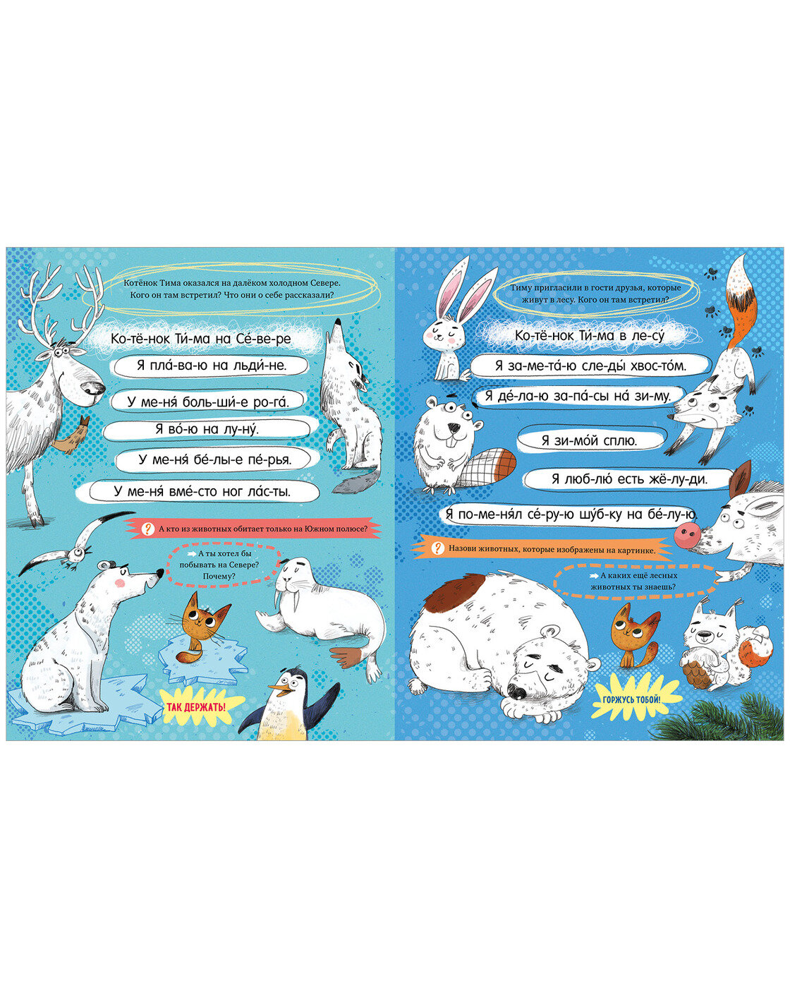 Малыш отправится в далекое путешествие с любопытным котенком Тимофеем: он решил объехать весь свет и познакомиться с огромным количеством животных. Среди них – обитатели Севера, леса, Африки и не только. На каждой страничке – сразу несколько очаровательных персонажей. Нужно выразительно прочитать реплики, угадать, кому они принадлежат, и «оживить» их всех, проще говоря, раскрасить.