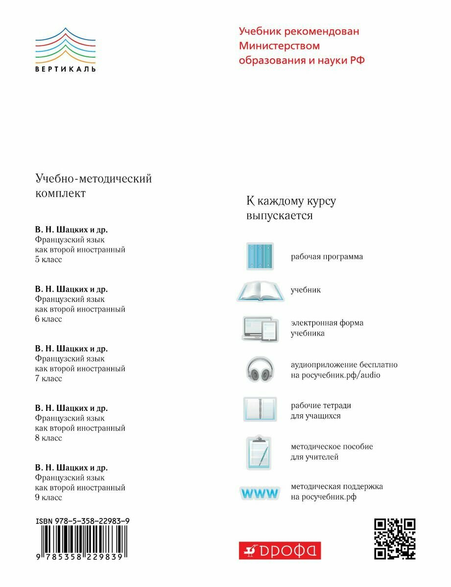 Французский язык как второй иностранный. 9 класс. Учебник (Вера Николаевна Шацких); Дрофа, 2019
