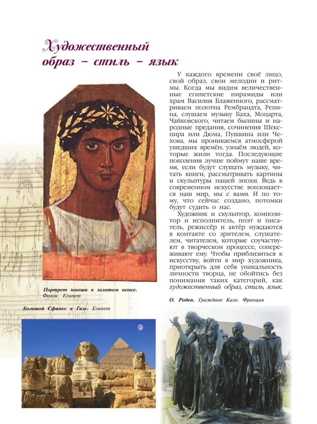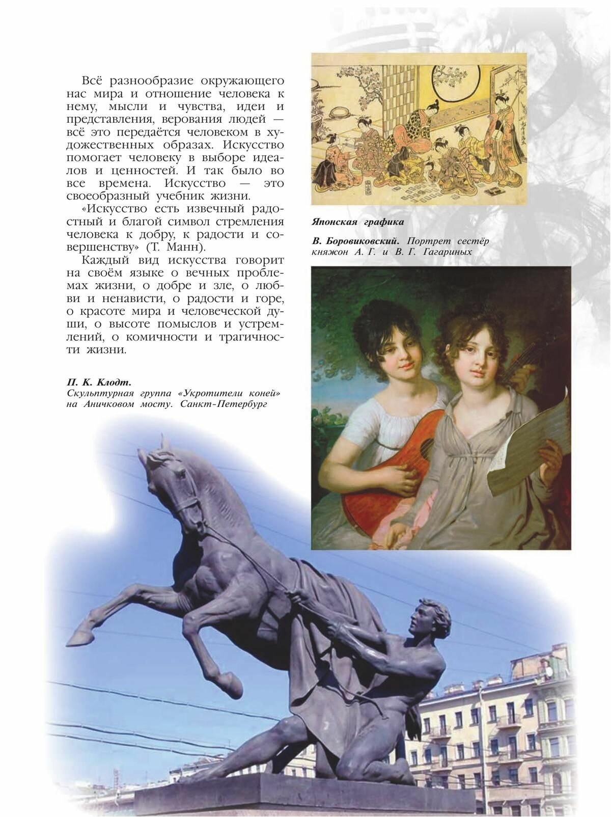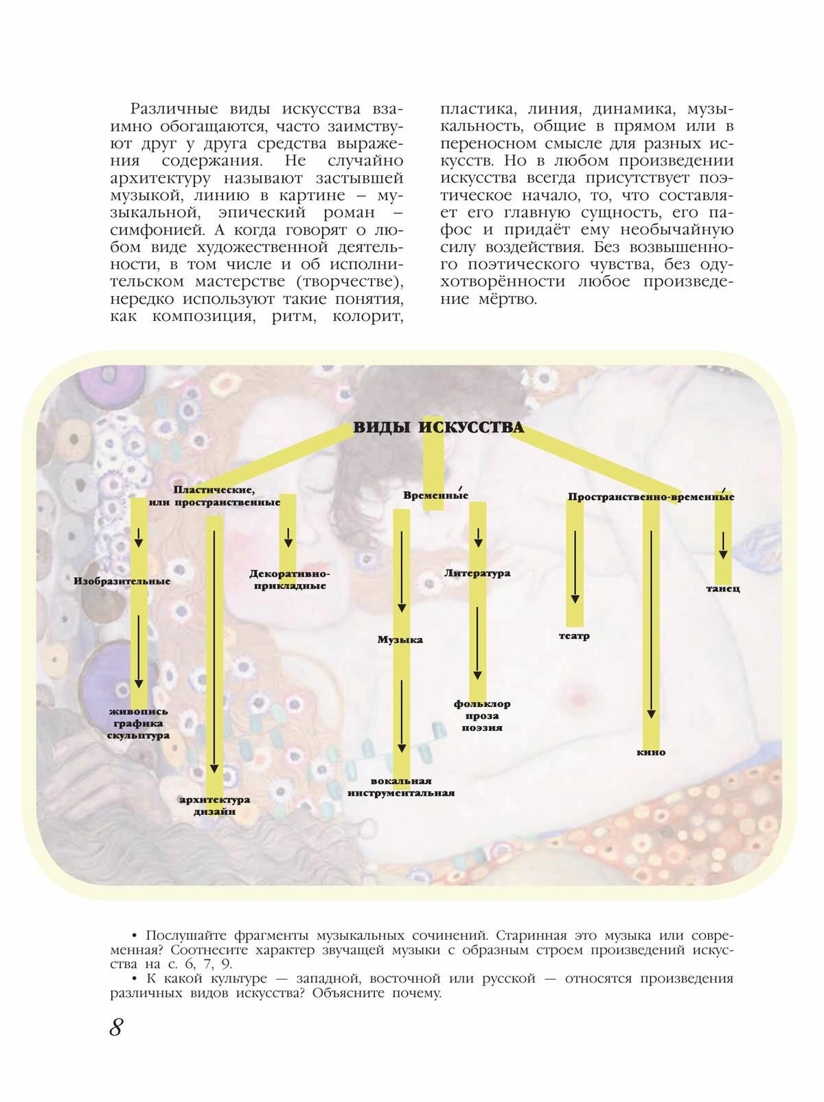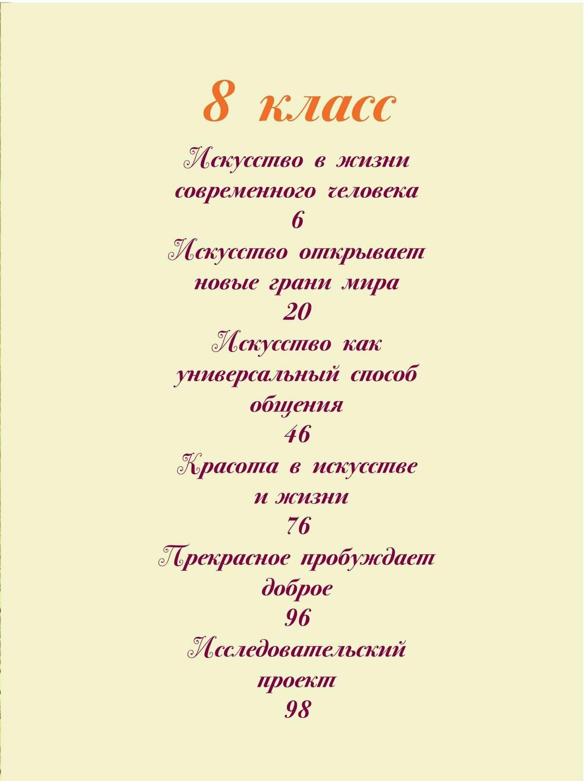 Учебник интегрированного типа познакомит учащихся с различными видами искусства, с функциями, которые они выполняют в жизни человека и общества. Он поможет школьникам приобщиться к художественно-творческой деятельности на уровне компетентного читателя, зрителя, слушателя.