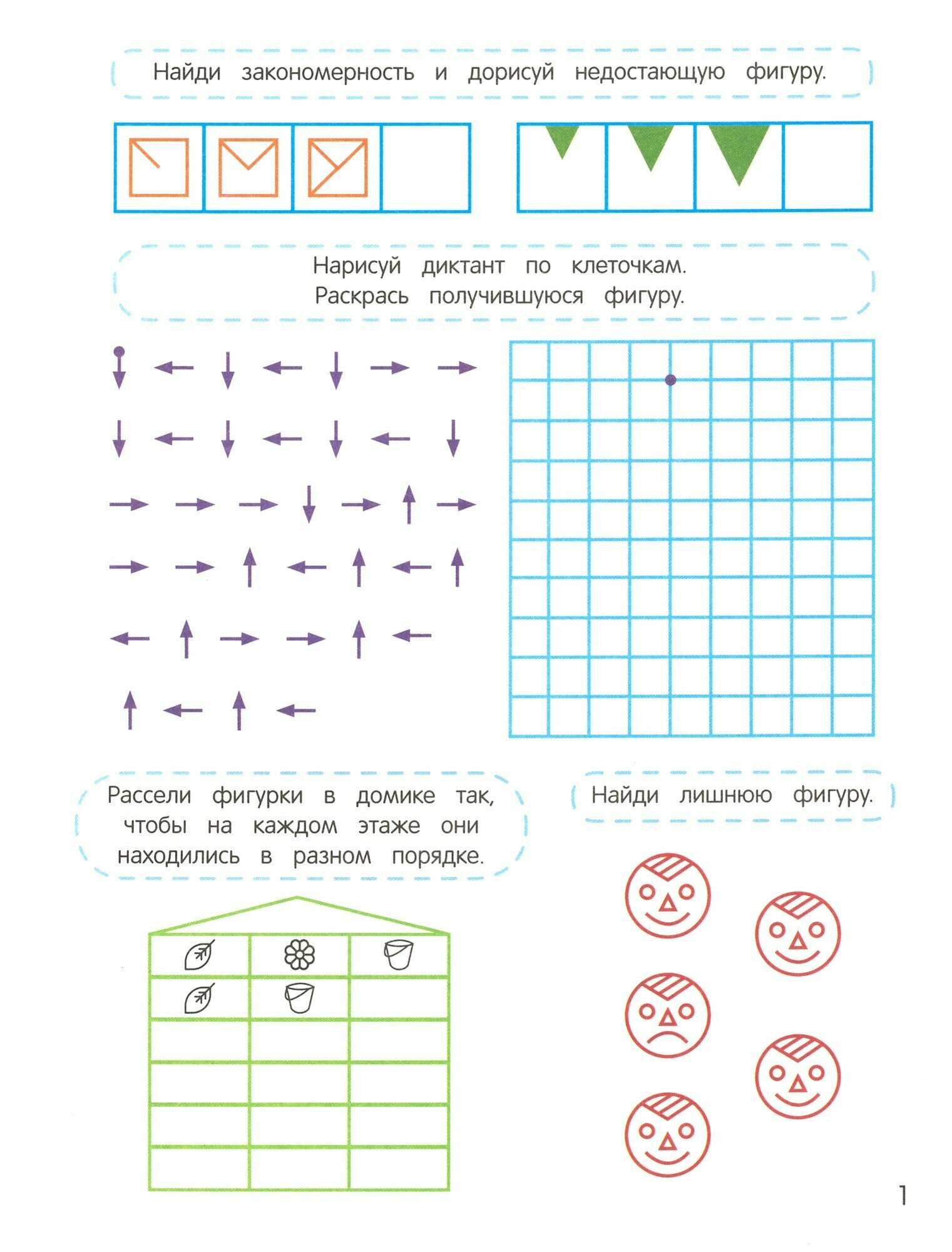 Книга размером немного поменьше, чем А4. Бумага белая и плотная, все иллюстрации красочные. На каждой странице по 4 упражнения, все страницы построены однотипно. Таким образом, можно проходить по одной страничке за занятие. Книга рассчитана на восемь таких занятий. Задания интересные и имеют разное содержание. Пособие понравилось, захотелось собрать всю серию.
