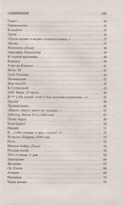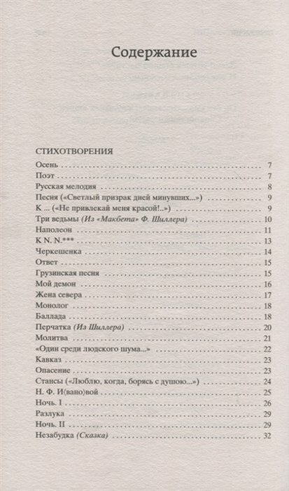 Отличный сборник.Очень много стихов Лермонтова и драма "Маскарад".Стихи интересные,подойдут людям любого возраста.Читаю с удовольствием.Многие знаю еще со школы,приятно снова вспомнить детство.Рифма отличная,легко учить наизусть.Оформление красивое,переплет твердый,хороший шрифт.Книга небольшого веса,удобно взять с собой.
