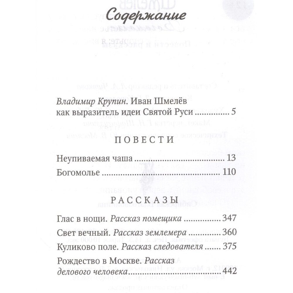 Иван Сергеевич Шмелёв (1873-1950) — признанный классик русской литературы. Его творчество объединено темой России и Православной веры. Настоящее издание включает в себя повести «Богомолье», «Неупиваемая Чаша» и избранные рассказы. Книга будет интересна школьникам и учителям, студентам и преподавателям вузов, людям воцерковленным и только начинающим труд воцерковления.