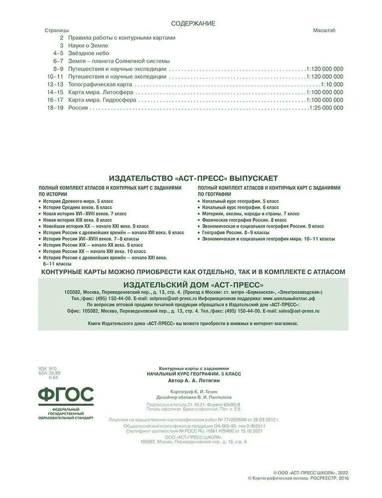 Контурные карты с заданиями. Начальный курс географии. 5 класс. (Летягин Александр Анатольевич); АСТ-Пресс, 2021