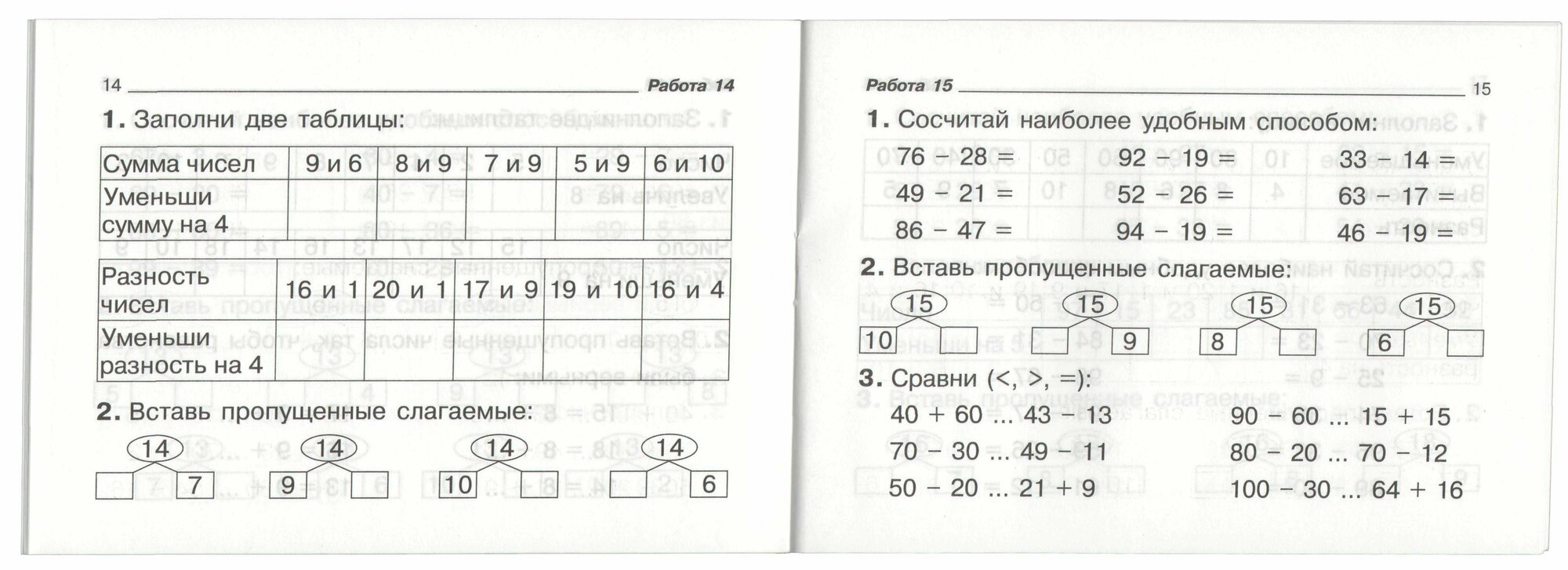 Дорогие ребята! Эта книга предназначена для того, чтобы вы могли проверить и закрепить знания, полученные на уроках математики. Здесь вы найдете как задания на повторение тем, изученных в 1-м классе, так и задания, охватывающие учебный материал 2-го класса. В каждом задании вы должны вставить (где это требуется) подходящие числа, знаки арифметических действий или знаки сравнения. А проверить, правильно ли вы выполнили задания, поможет учитель (или родители).