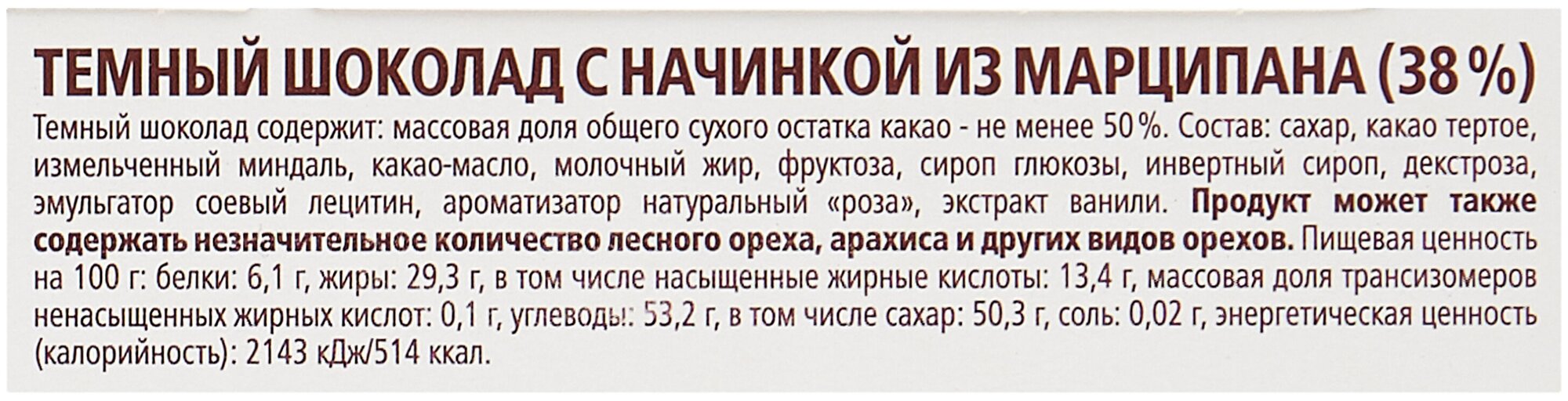 | Состав | темный шоколад содержит |