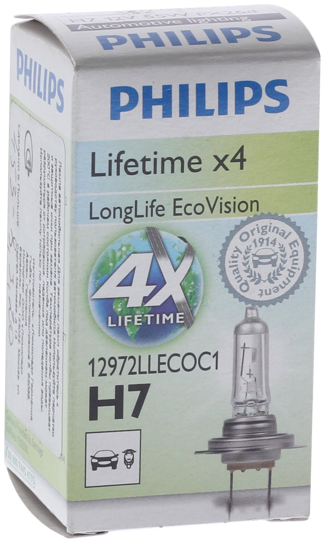 - Галогенная лампа Philips LongerLife Ecovision H4 12V 60/55W 12342LLECOS2 (2 шт.)