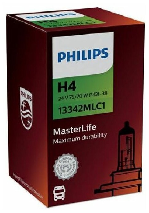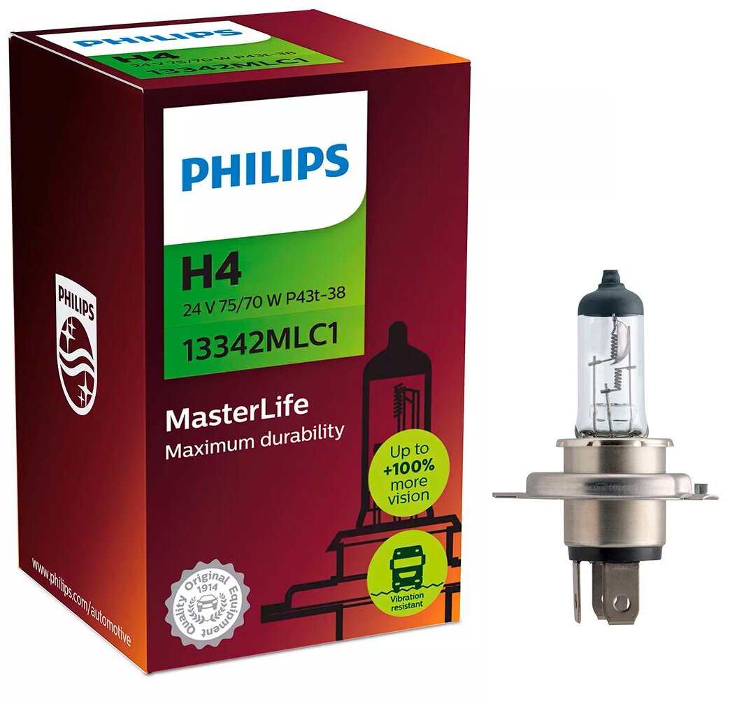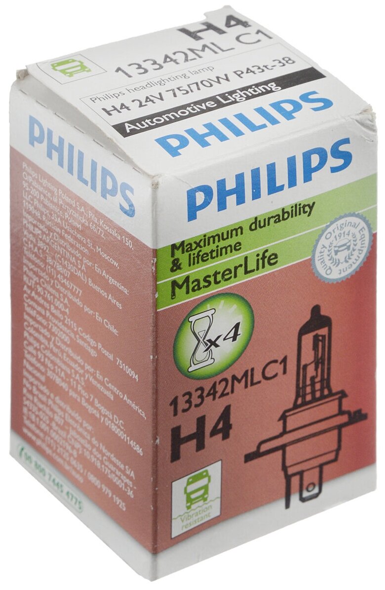 - Лампа галогенная Philips H4 MasterLife 24V-7570W, 1 шт, 13342MLC1