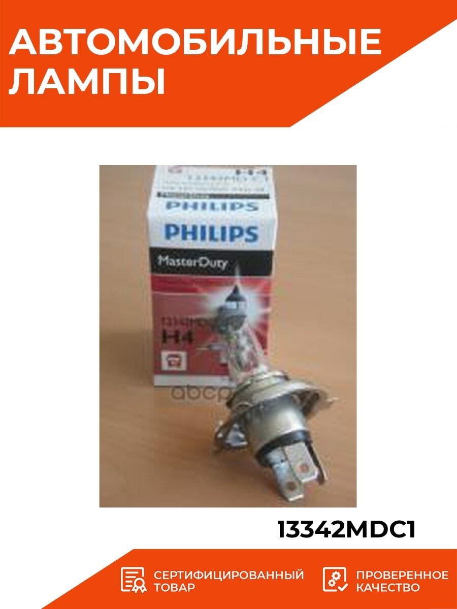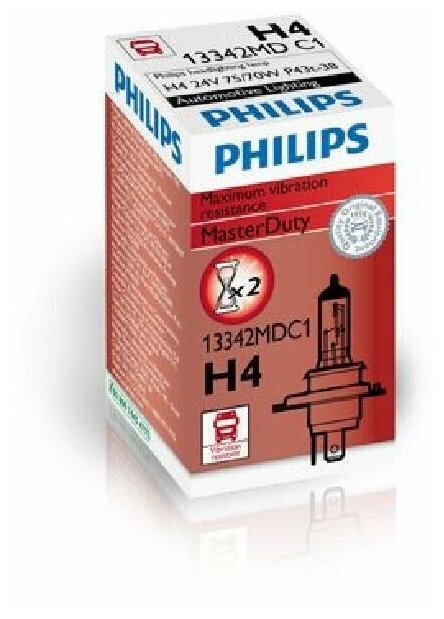 - Лампа галогенная Philips H4 MasterDuty 24V-7570W, 1 шт, 13342MDC1