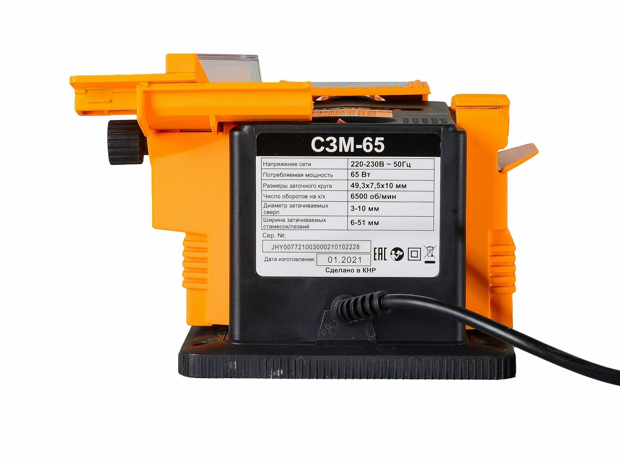 Станок заточной многофункциональный СЗМ-65 предназначен для заточки различного инструмента: сверл, стамесок, лезвий, ножниц и ножей. Прибор является универсальным, может затачивать разные типы лезвий благодаря точильному кругу диаметром 49,3 мм, который приводит в движение электромотор мощностью 65 Вт. Диаметр затачиваемых сверл: 3 – 10 мм. Ширина затачиваемых стамесок / лезвий: 6 – 51 мм.