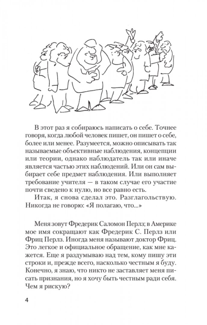 Предлагаемая вашему вниманию книга безусловно выделяется из огромного количества произведений, в том числе, автобиографических, написанных выдающимися личностями нашего времени. Ее автор - основатель одного из самых популярных и эффективных методов психотерапии - гештальттерапии. Благодаря этому методу сотни тысяч людей во всем мире обрели уверенность в своих силах и возможностях, стали подлинными хозяевами своей жизни. Со страниц этой необычной книги перед читателем предстает образ автора, история его исканий, духовного роста, философских размышлений. Здесь же содержатся интересные научные наблюдения и выводы, представляющие большой интерес для всех, кто интересуется современной психологией.