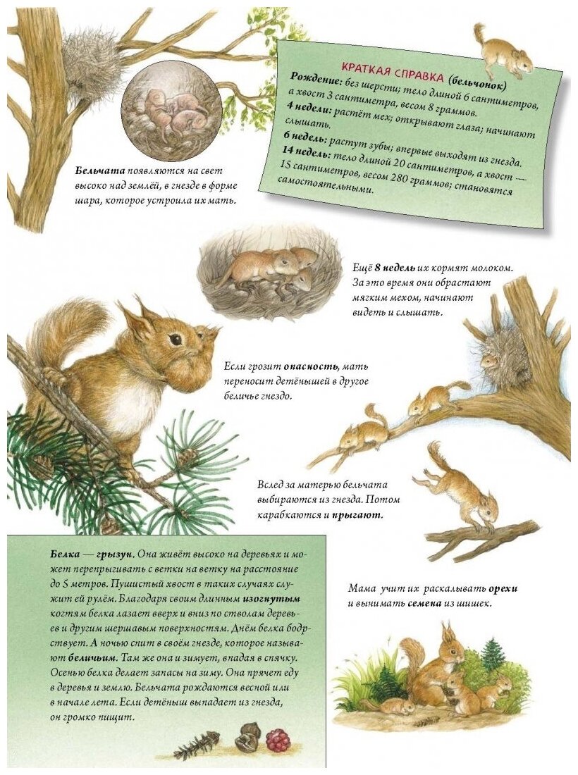 Знал ли ты, что кролики появляются на свет без шёрстки, лисы рождаются не рыжими, а серыми, барсучата впадают зимой в спячку, а аисты зимой улетают на юг? Эта книга содержит уйму познавательной информации о жизни уток, белок, барсуков, бобров и многих других малышей. Известная писательница Сюзанна Риха расскажет тебе, в какое время года рождаются животные и как они вырастают. Ты узнаешь об удивительных и трогательных историях дружбы ребят и пушистых малышей! Присоединяйся к нашему пушистому приключению!