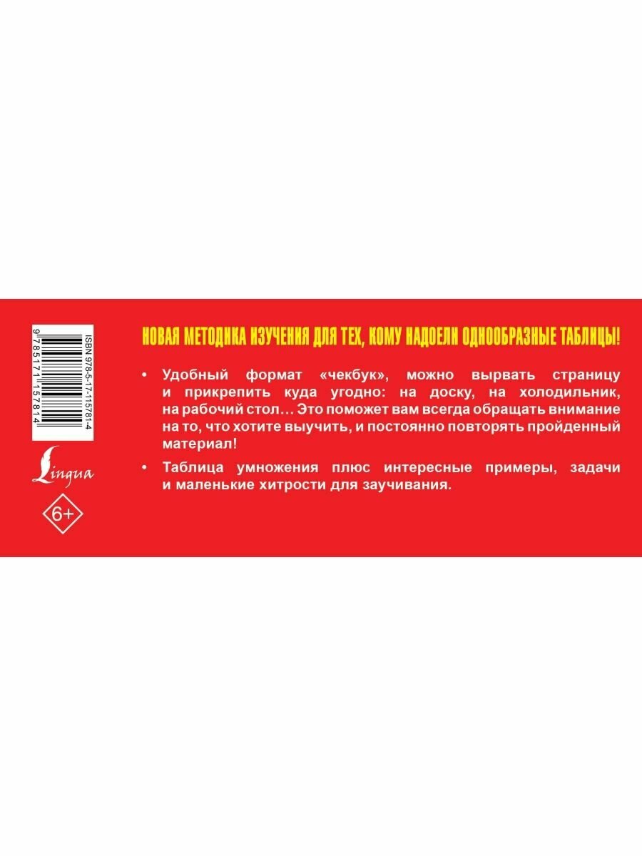 Новый способ учить таблицу умножения. Удобный формат "чекбук": можно вырвать страницу и прикрепить куда угодно - материал всегда на виду! Плюс интересные примеры, задачи и маленькие хитрости для заучивания.