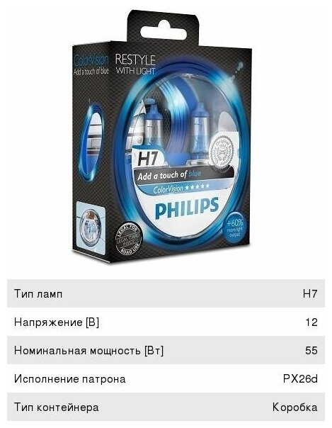- Галогенная лампа Philips H7 ColorVision Blue 12V 12972CVPBS2