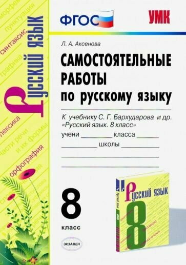 УМК. САМ.РАБ. ПО РУССКОМУ ЯЗЫКУ. 8 КЛАСС. БАРХУДАРОВ. (к новому ФПУ) (Аксенова Лилия Алексеевна); Экзамен, 2020
