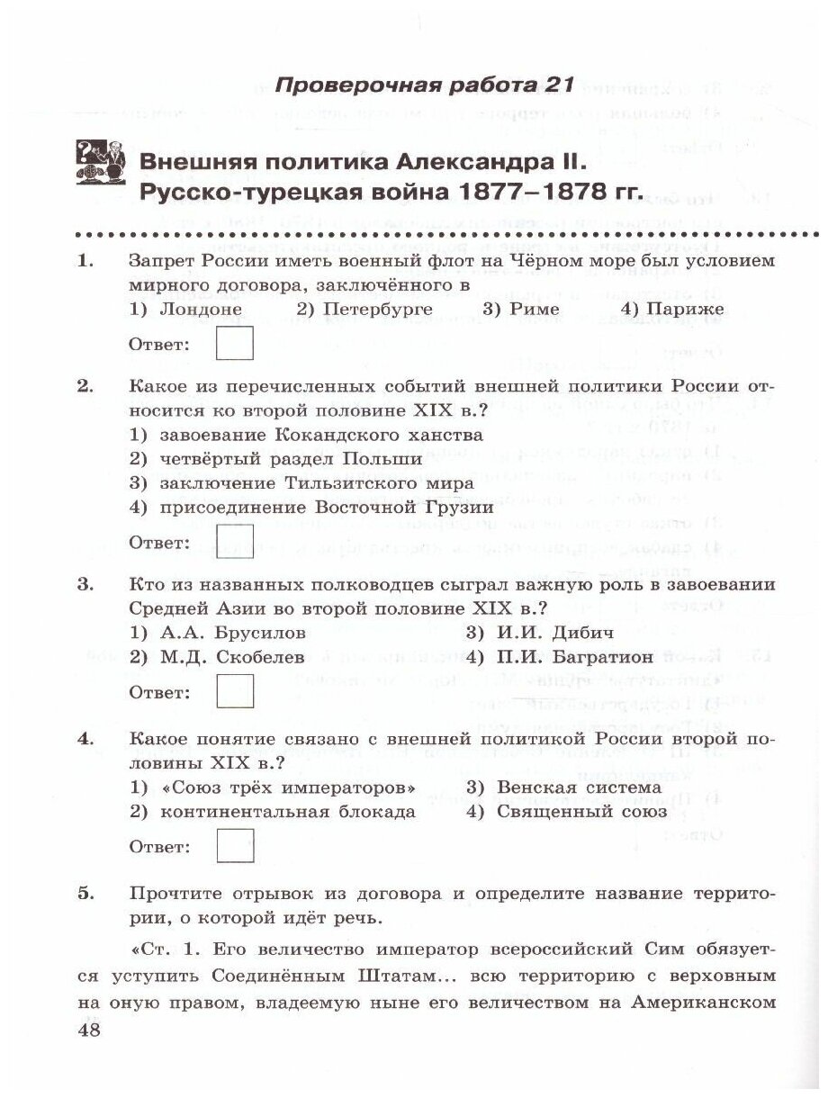 Данное пособие полностью соответствует федеральному государственному образовательному стандарту (второго поколения) и требованиям Историко-культурного стандарта. Пособие включает проверочные работы по истории России, которые соответствуют содержанию и структуре учебника "История России. 9 класс" под редакцией А. В. Торкунова (издательство "Просвещение"). Задания можно использовать для обучения и самоконтроля учащихся, проверки домашних заданий, текущего и итогового контроля, а также постепенной подготовки к ОГЭ. Ко всем заданиям даны ответы. Я. В. Соловьёв - кандидат исторических наук, доцент Московского государственного областного университета, автор пособий по истории России.