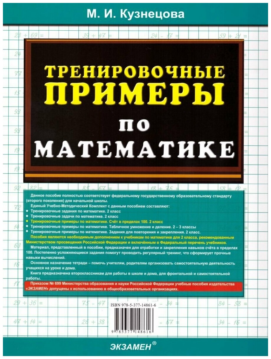 ТРЕНИРОВОЧНЫЕ ПРИМЕРЫ ПО МАТЕМАТИКЕ. СЧЁТ В ПРЕДЕЛАХ 100. 2 КЛАСС. . (Кузнецова Марта Ивановна, Кузнецова Марина Ивановна); Экзамен, 2020