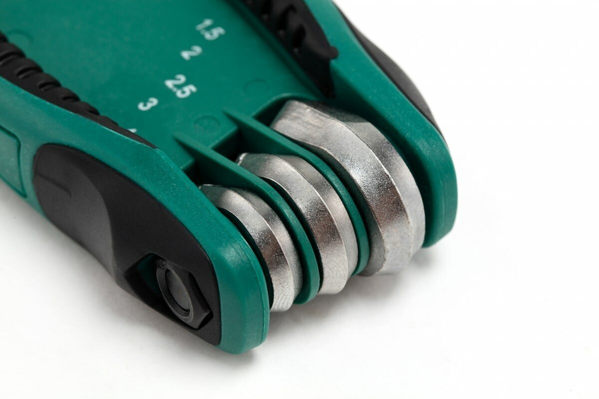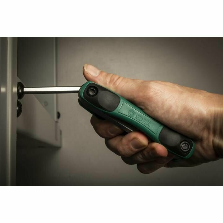 Складной набор шестигранных ключей 8шт Sata имеет компактный размер в сложенном состоянии, очень удобен для переноски с собой и осуществления быстрой сборки/разборки различных конструкций. Эргономичный держатель удобно располагается в ладони в процессе завинчивания/отвинчивания винтов с внутренним шестигранным рабочим профилем. Приспособление широко используется среди профессионалов.