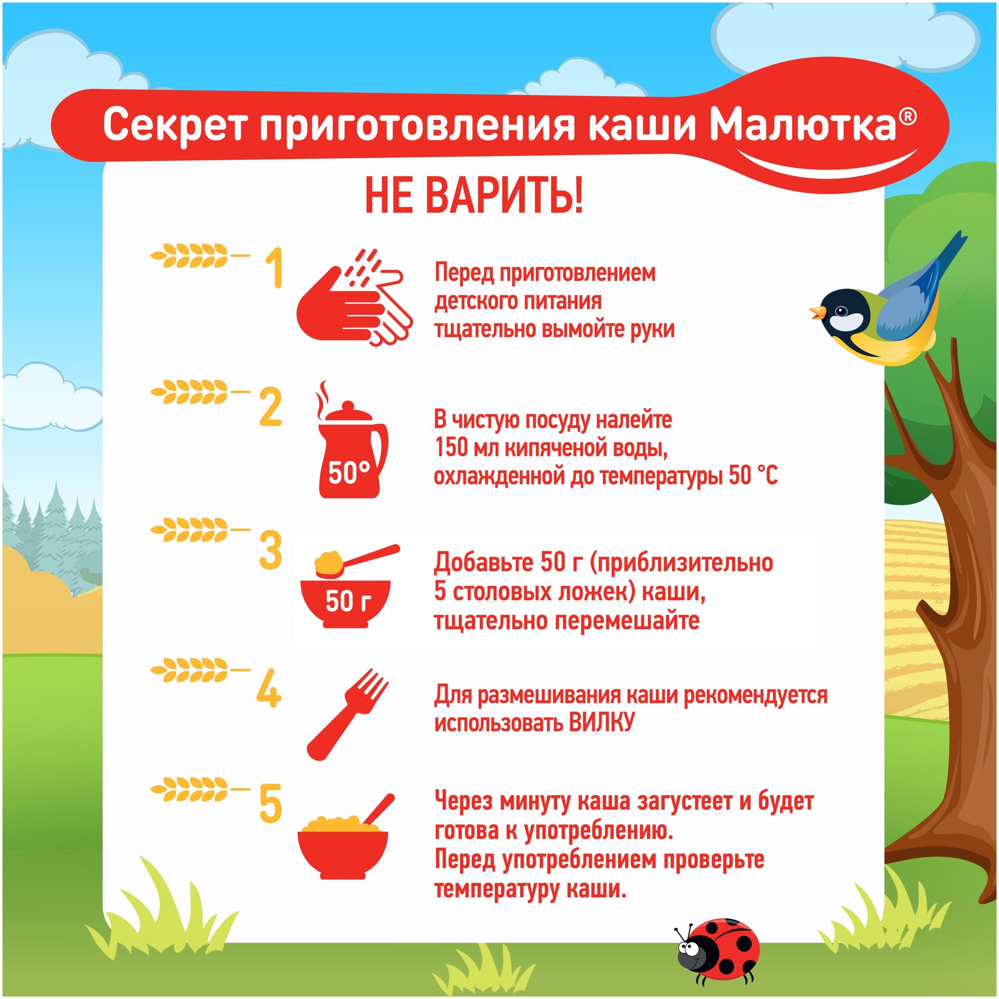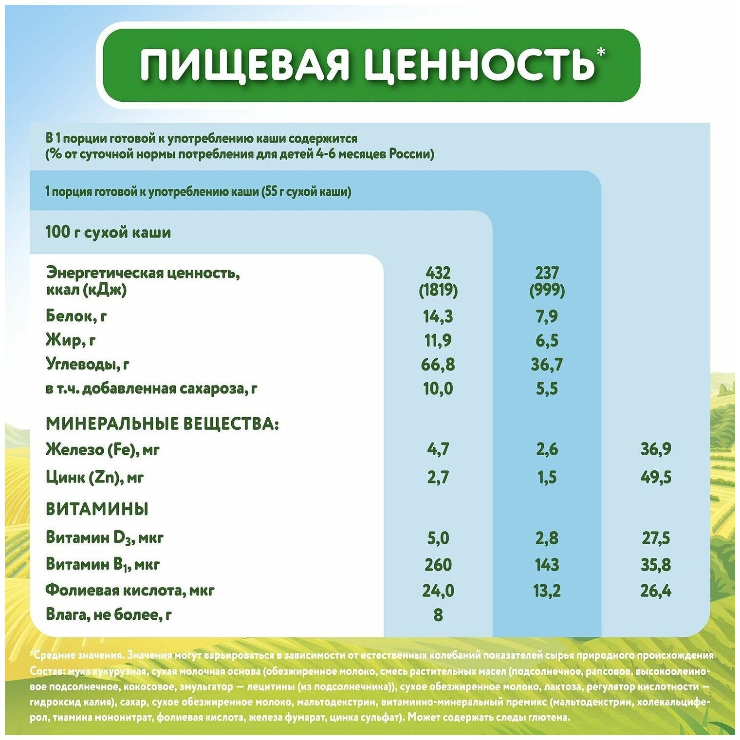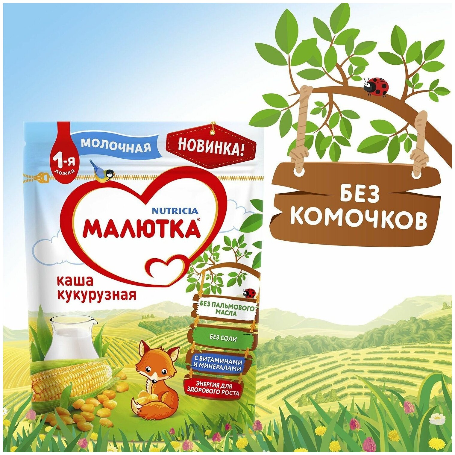 Малютка каши родные каши с родных полей! В основе наших рецептов отборные злаки с российских полей Алтая, Ставрополья, Краснодара, выращенные и отобранные по высоким стандартам качества. Создавая наши каши, специалисты компании Nutricia вдохновлялись природой регионов России. Каждая порция содержит необходимые для развития белки, витамины и минералы, а также углеводы, которые дают малышу энергию для роста. 1 ложка. Заботливое начало. - Родные каши с родных полей; - Энергия для роста; - Без консервантов и красителей; - Без соли; - С витаминами и минералами. Каша молочная сухая быстрорастворимая кукурузная Малютка, для питания детей с 5 месяцев, согласно требованиям норм законодательства России и Республики Казахстан. Для оптимального роста, развития и здоровья малыша Всемирная Организация Здравоохранения рекомендует исключительно грудное вскармливание в первые 6 месяцев жизни и последующее введение прикорма при продолжении грудного вскармливания. Nutricia полностью поддерживает данные рекомендации. Проконсультируйтесь со специалистом перед началом использования продукта. Для детского питания. Рекомендуется готовить кашу непосредственно перед употреблением. Никогда не используйте остатки готового питания для последующего кормления. При введении прикорма рекомендуется приучать ребенка есть его с ложечки. После каждого приготовления питания тщательно закрывайте упаковку. Не допускается назначать детям, имеющим аллергию на любой компонент, входящий в состав продукта.