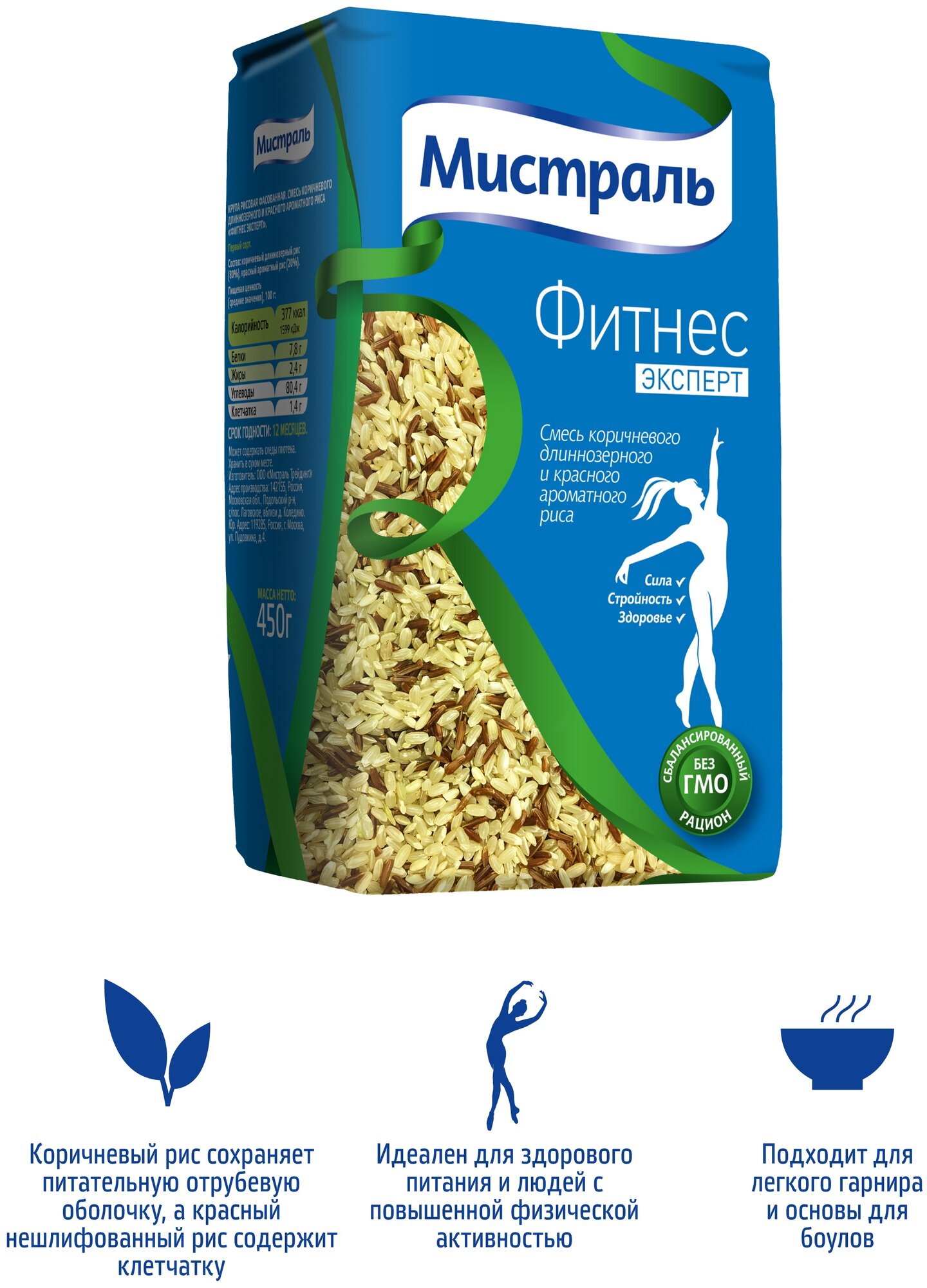 Рис «Мистраль» «Фитнес Эксперт» – это крупа, в основе которой два сорта зерен. В его составе – смесь коричневого цельнозернового и красного нешлифованного риса. Он легко усваивается организмом, способствует восстановлению энергии, быстро происходит процесс насыщения.