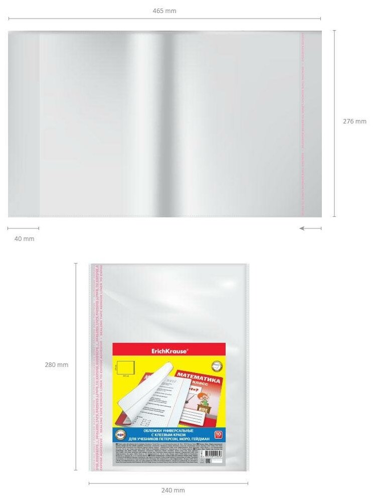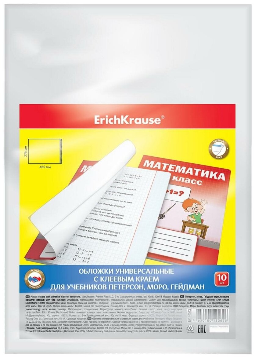 Обложки универсальные Erich Krause для учебников Петерсон Моро Гейдман с клеевым краем 10шт