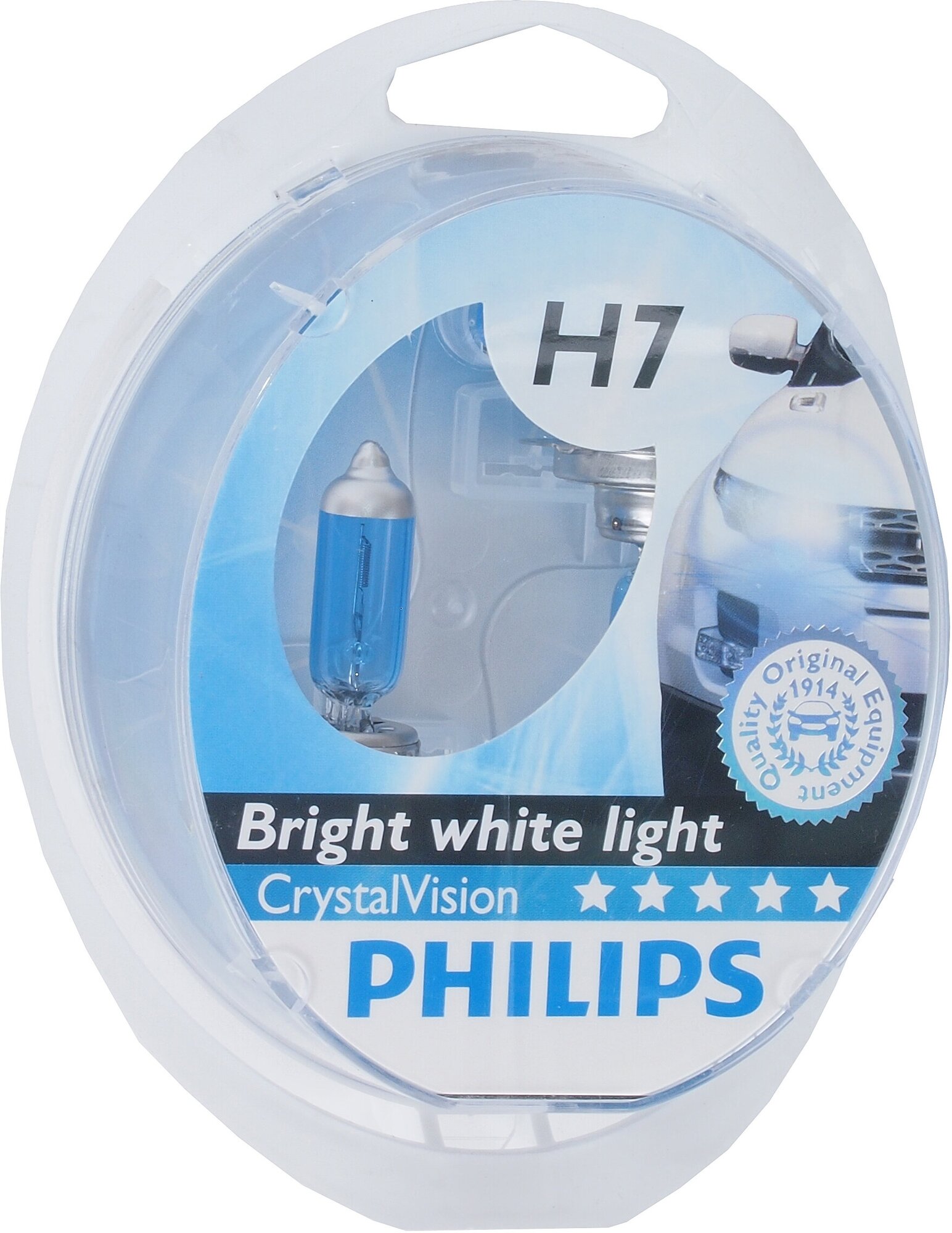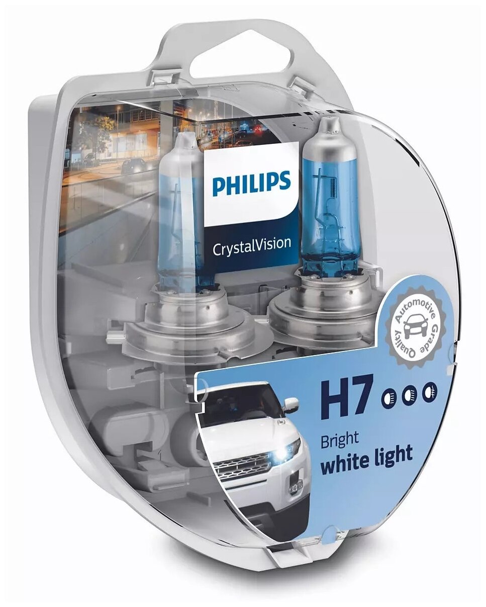Галогенные лампы головного освещения Philips CrystalVision излучают яркий белый свет до 4300 К и станут стильным решением для автомобиля. Благодаря голубому покрытию и серебристому колпачку лампы придадут стильный вид вашему автомобилю.
